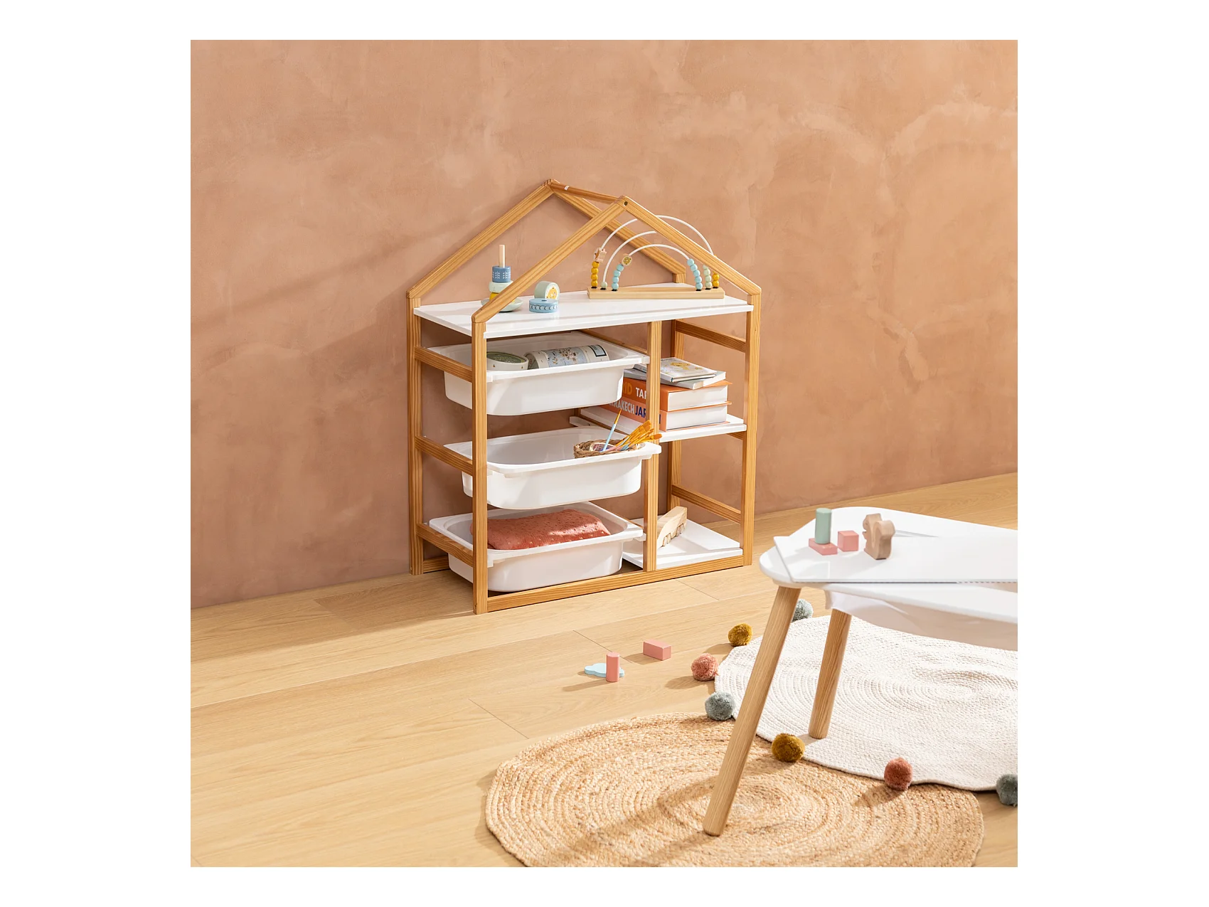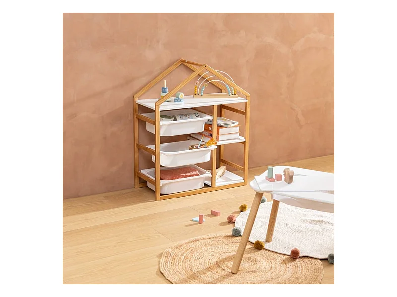 Étagère & Coffre à Roulettes "Maison" 103cm Blanc