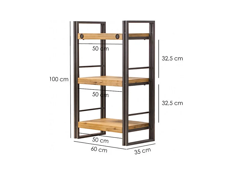 Bibliothèque 100 x 60 cm en bois d'acacia et métal - WORKSHOP