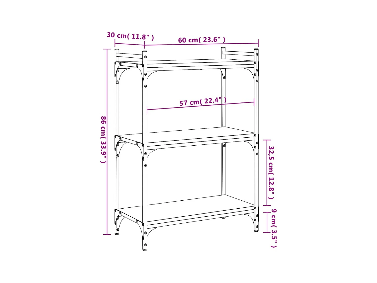 Bibliothèque 3 niveaux chêne fumé 60x30x80 bois d'ingénierie