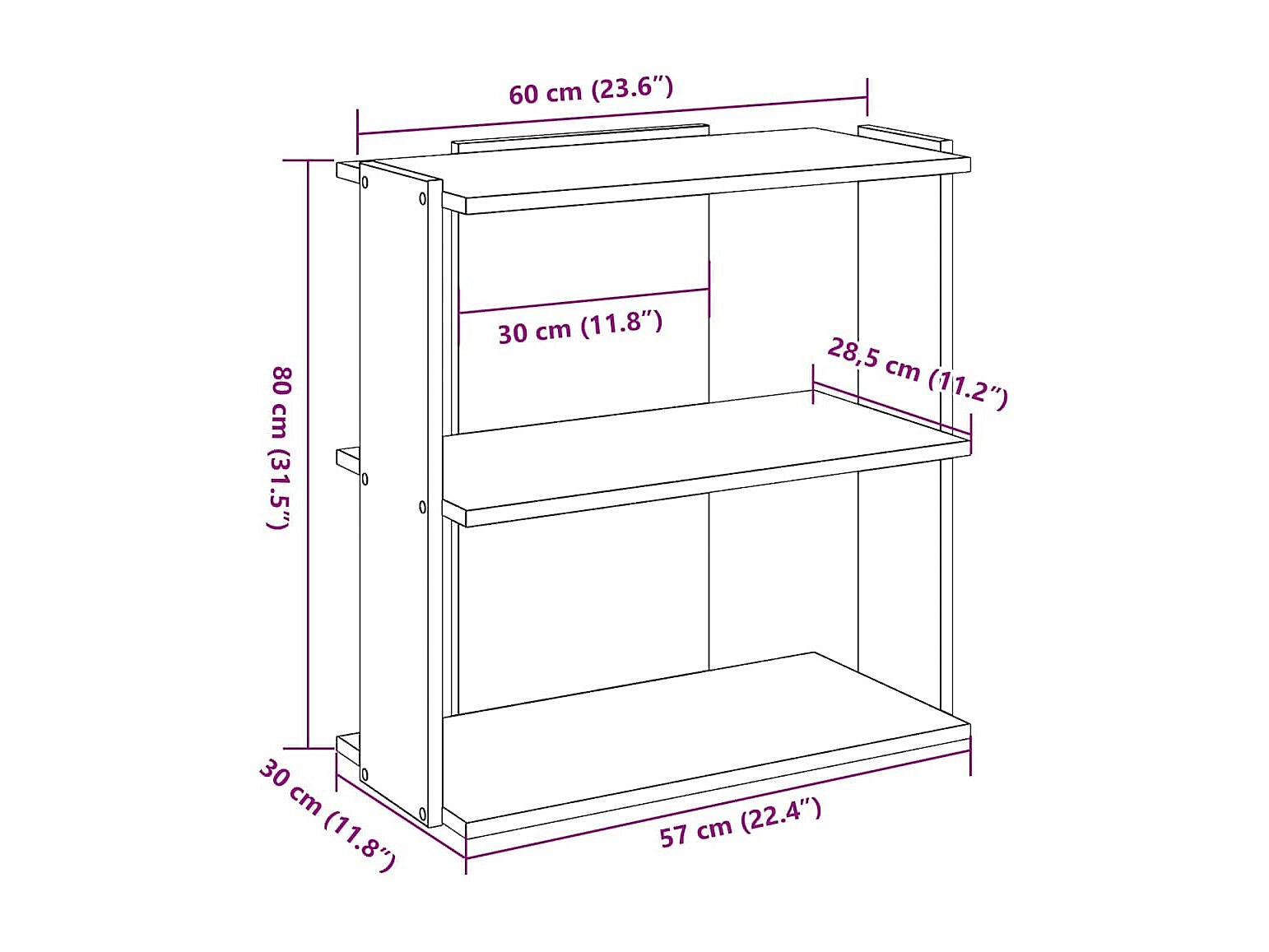 Bibliothèque à 3 niveaux chêne sonoma 60x30x80 cm