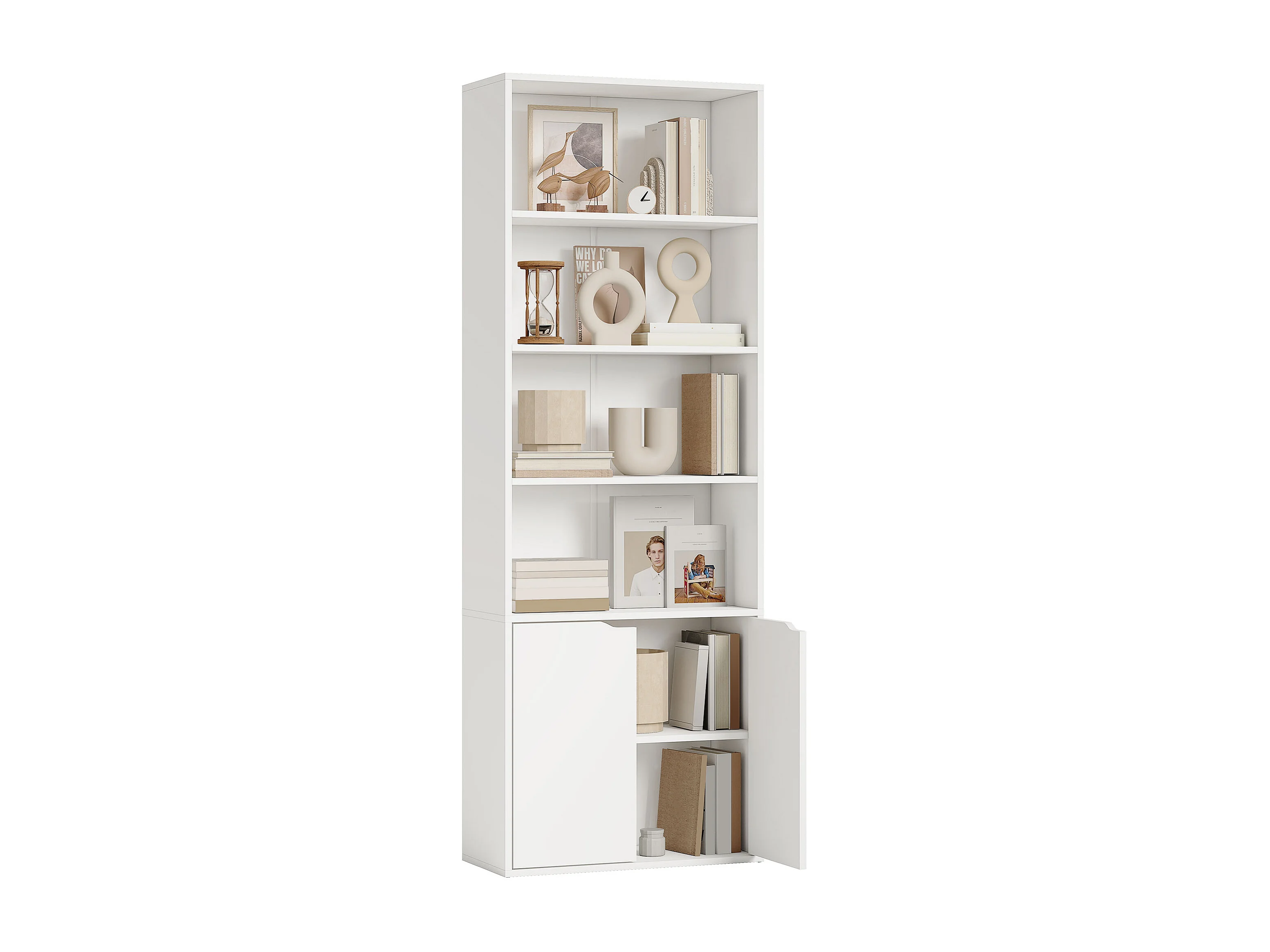 Bibliothèque 4 étagères armoire 2 portes dim. 59 x 29 x 180 cm blanc