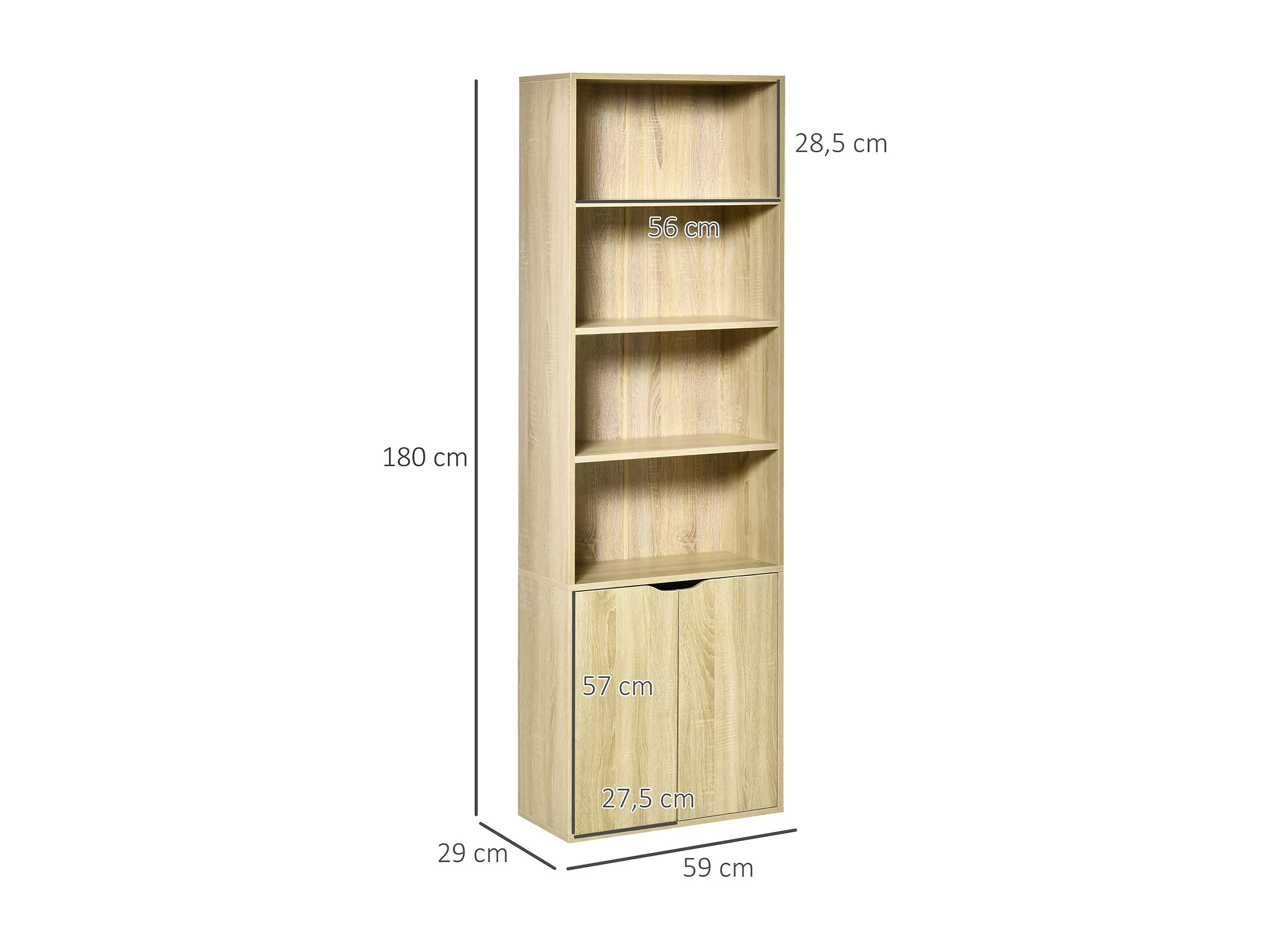 Bibliothèque 4 étagères armoire 2 portes dim. 59 x 29 x 180 cm effet bois clair