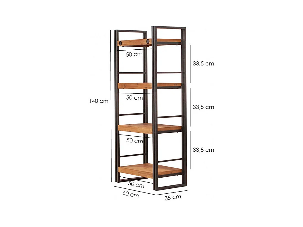 Bibliothèque 140 x 60 cm 4 étagères acacia et métal - WORKSHOP