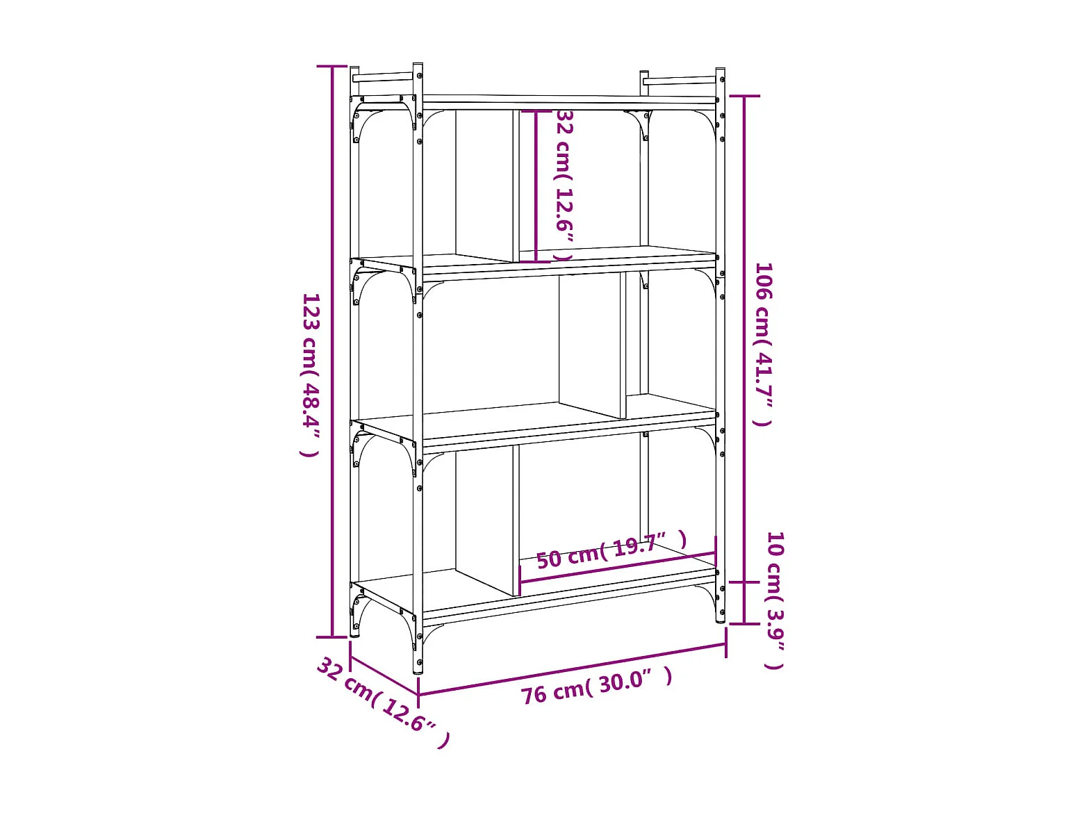 Bibliothèque 4 niveaux chêne fumé 76x32x123 bois d'ingénierie
