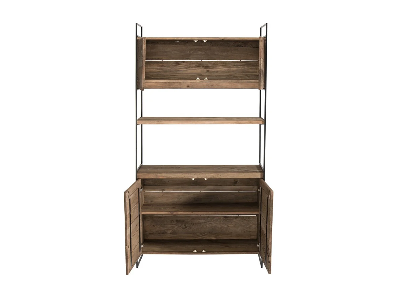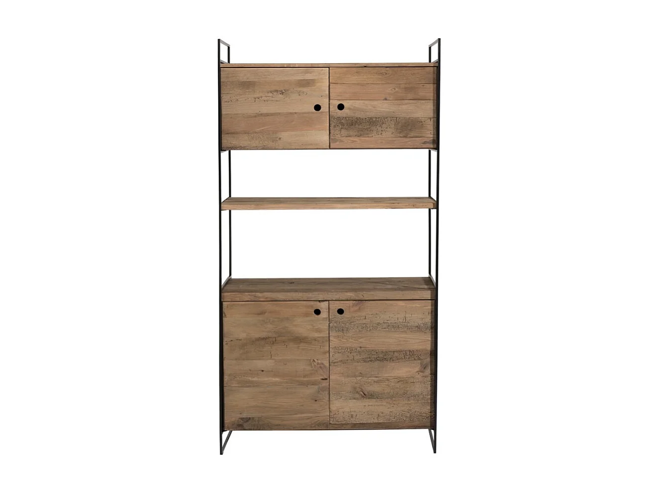 DANDY - Bibliothèque 4 portes 1 étagère bois Pin recyclé naturel et métal noir