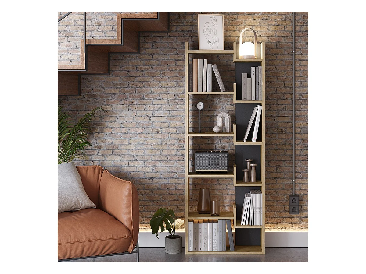 Bibliothèque design asymétrique – Pieter – 5 étagères. 10 compartiments de rangement. 83x23x173cm