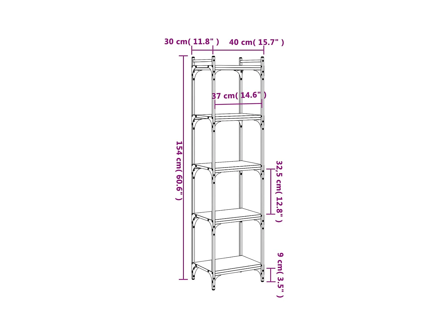 Bibliothèque 5 niveaux chêne fumé 40x30x154cm bois d'ingénierie