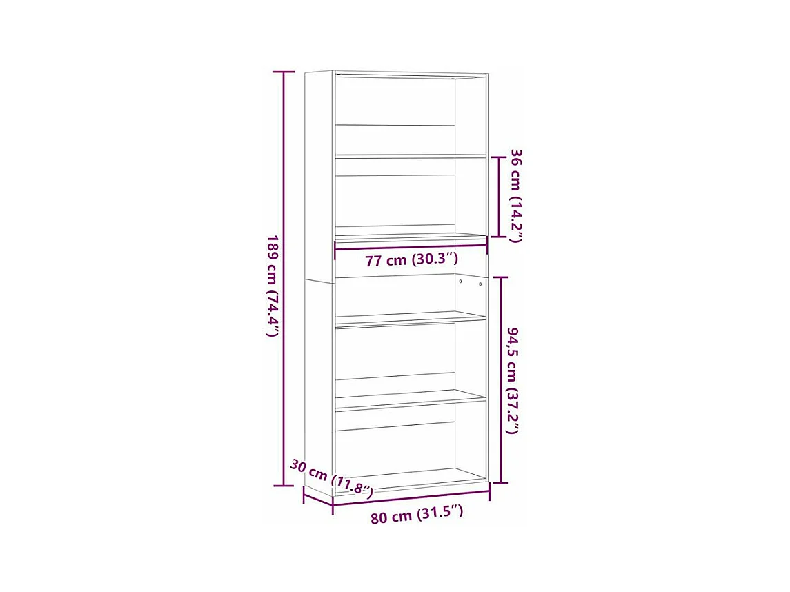 Bibliothèque 5 niveaux en bois Klazo L80xH189xP30 - Style Classique-Couleur Chêne clair