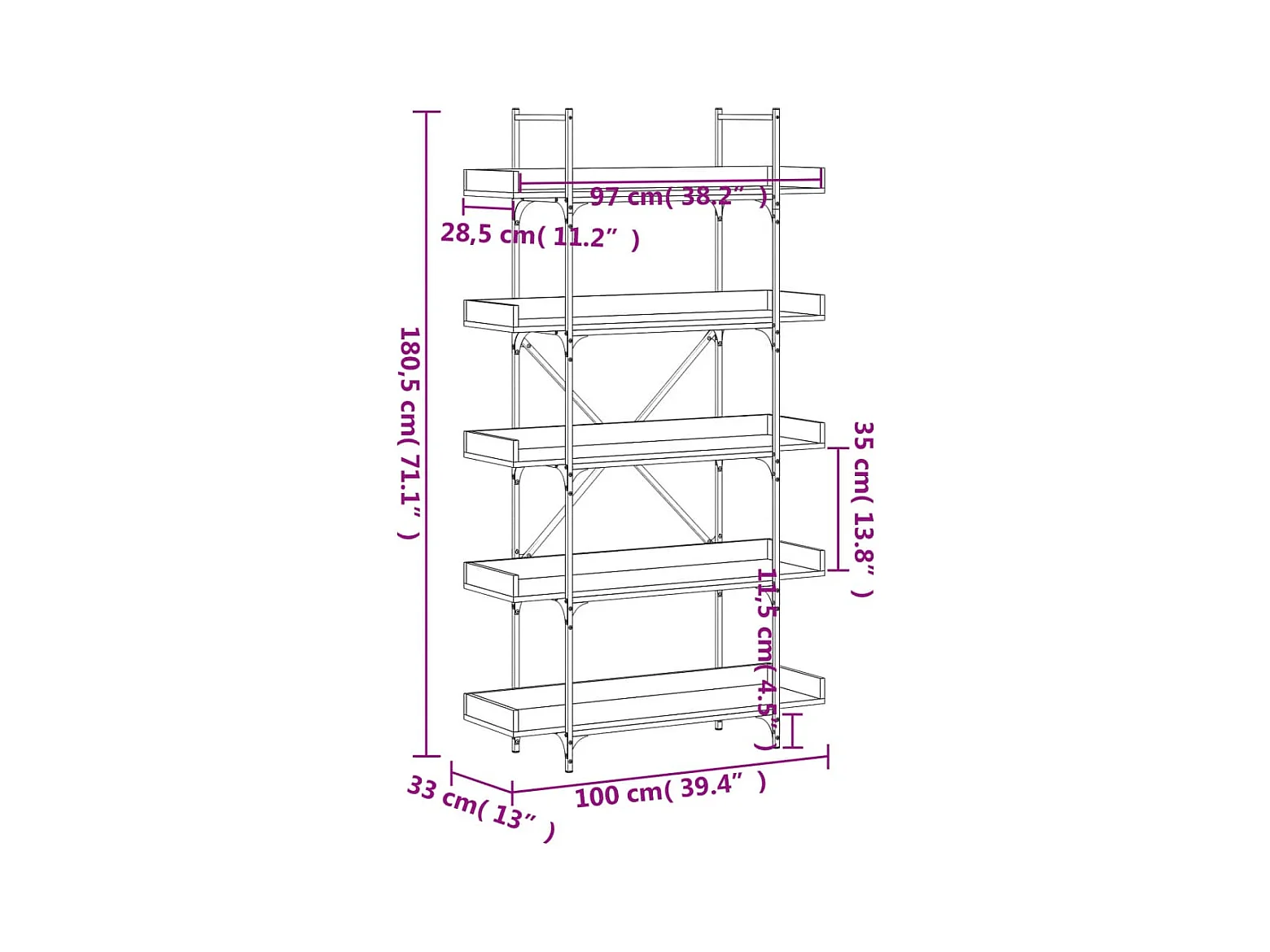 Bibliothèque à 4 niveaux chêne fumé 100x33x145,5