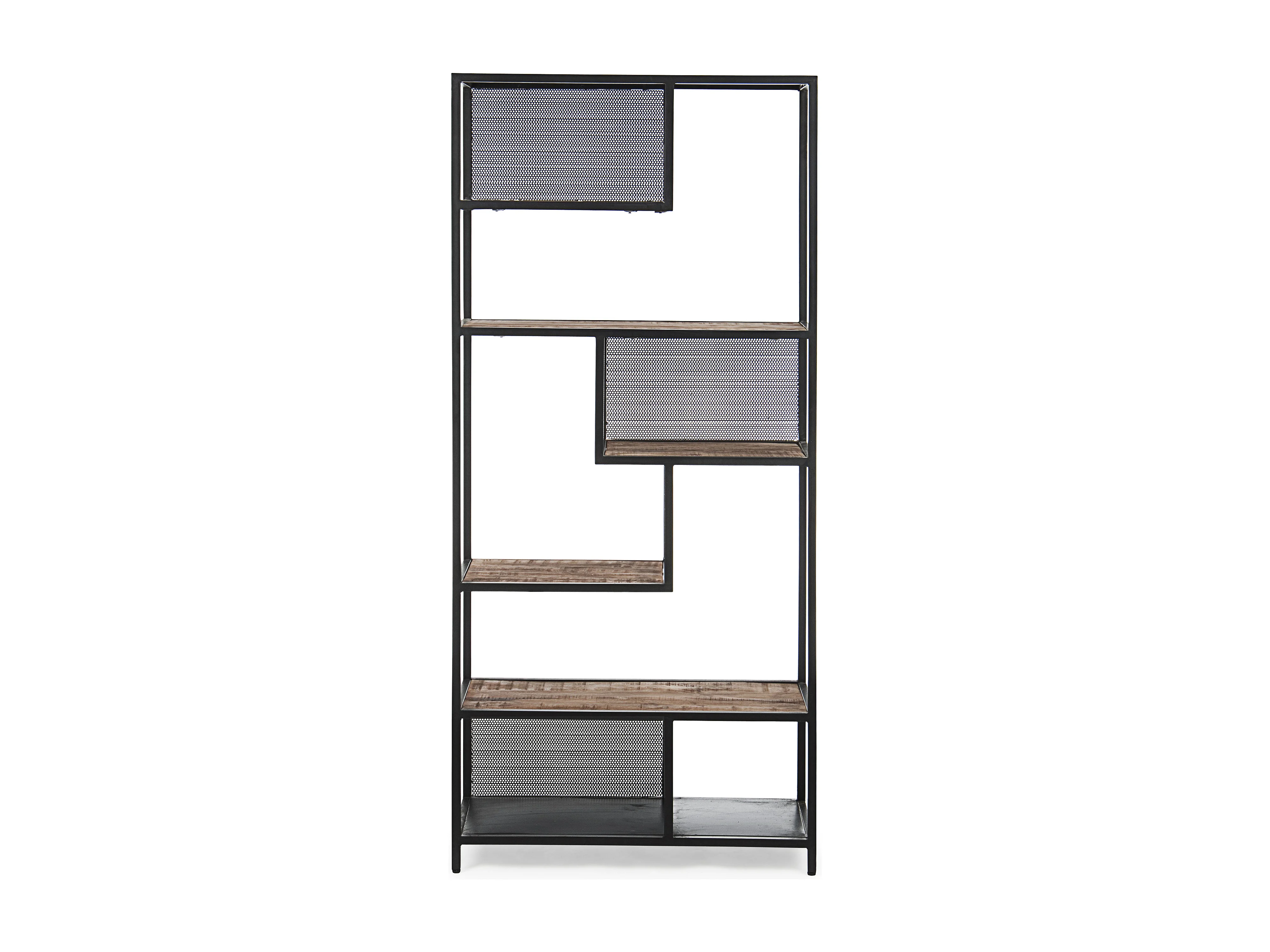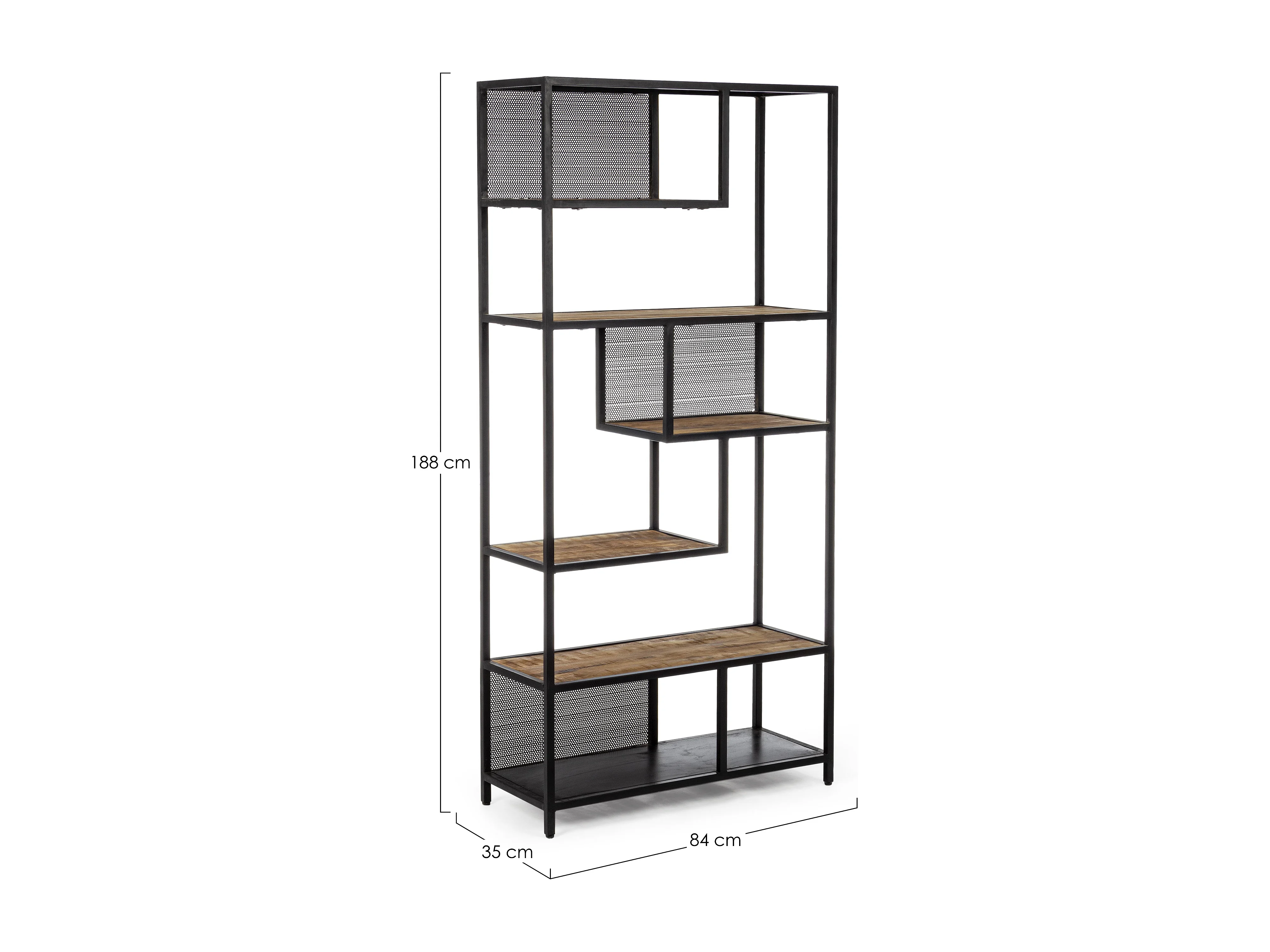 Bibliothèque 6 niveaux acier noir et bois de manguier Rica 84cm