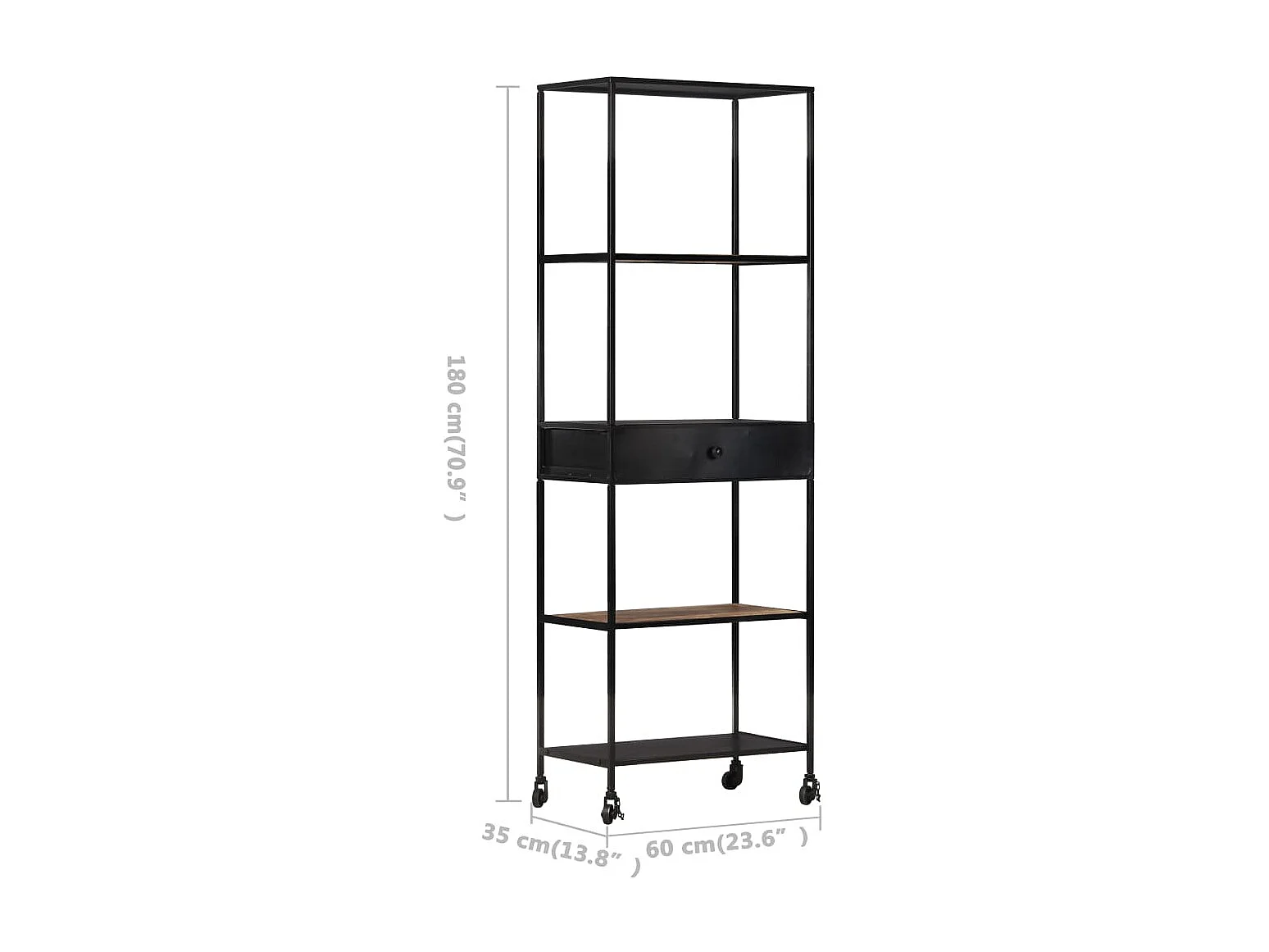 Bibliothèque 60x35x180 Bois de manguier brut et fer