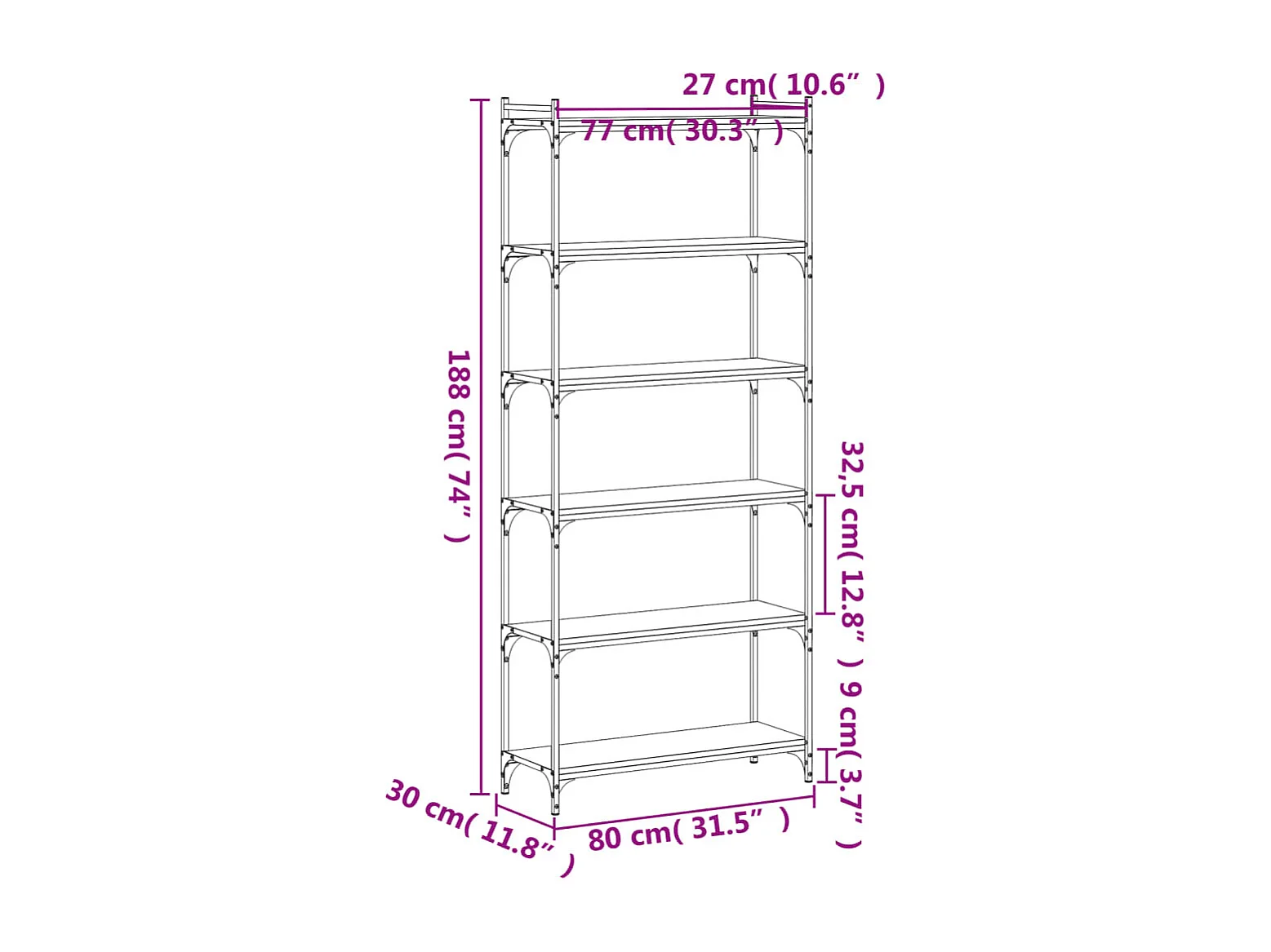 Bibliothèque 6niveaux sonoma gris 80x30x188 bois d'ingénierie