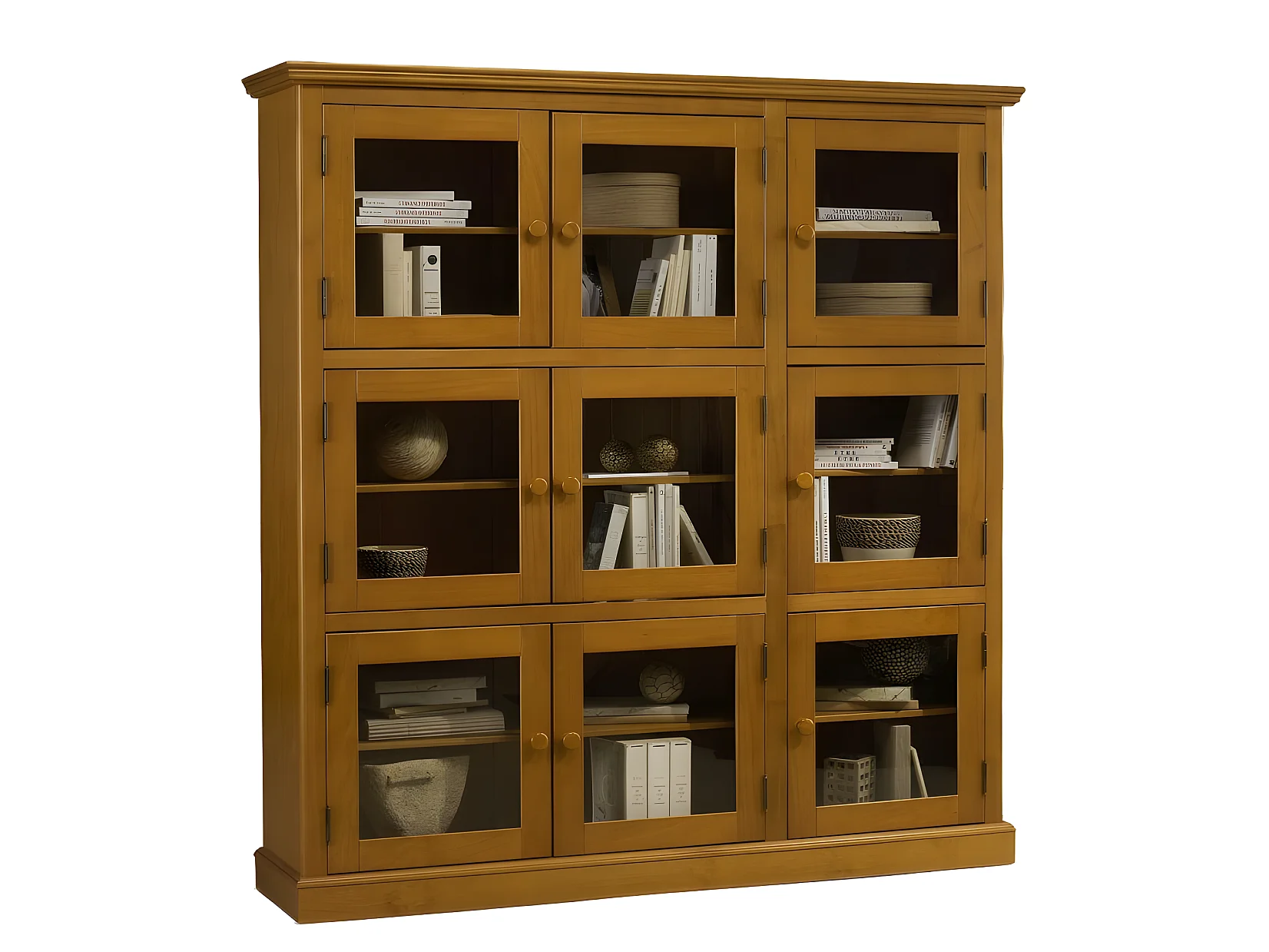 Bibliothèque 9 Portes Vitrées Pin Miel