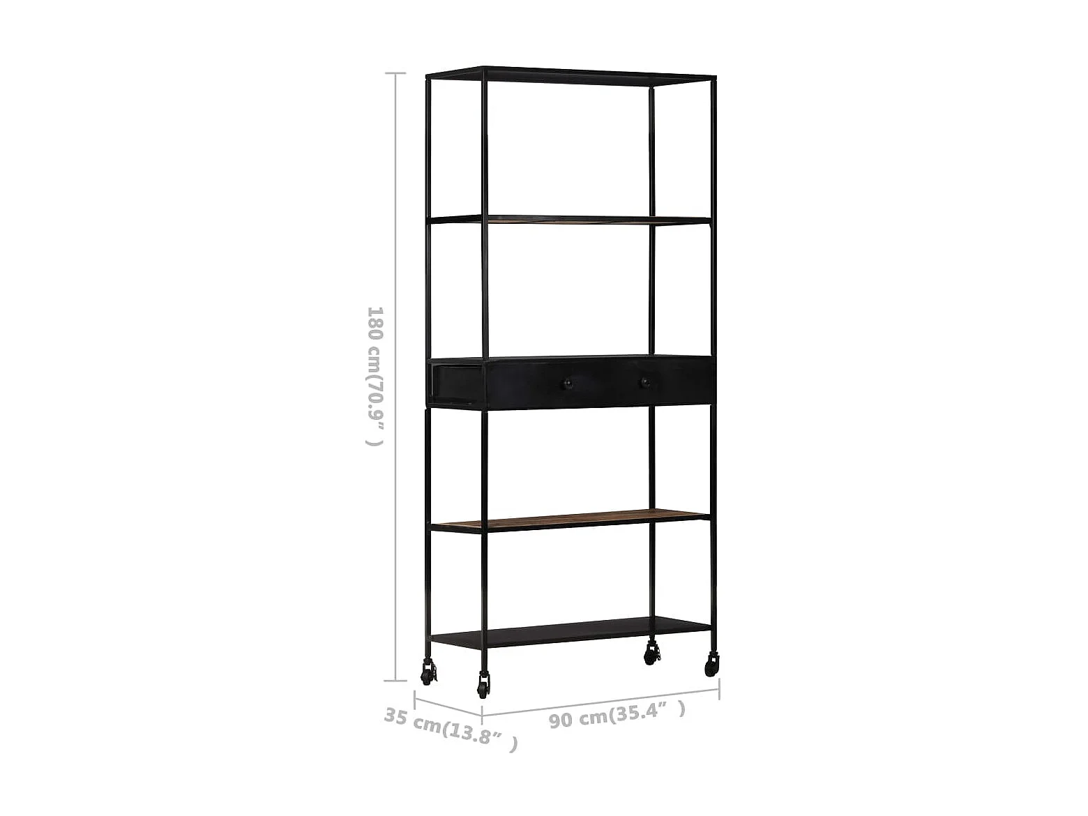 Bibliothèque 90x35x180 Bois de manguier brut et fer