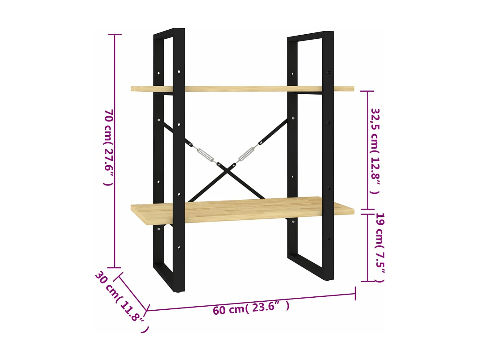 Bibliothèque à 2 niveaux 60x30x70 cm Bois de pin massif