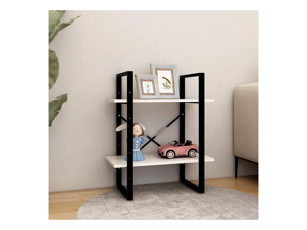 Bibliothèque à 2 niveaux Blanc 60x30x70 Bois de pin massif