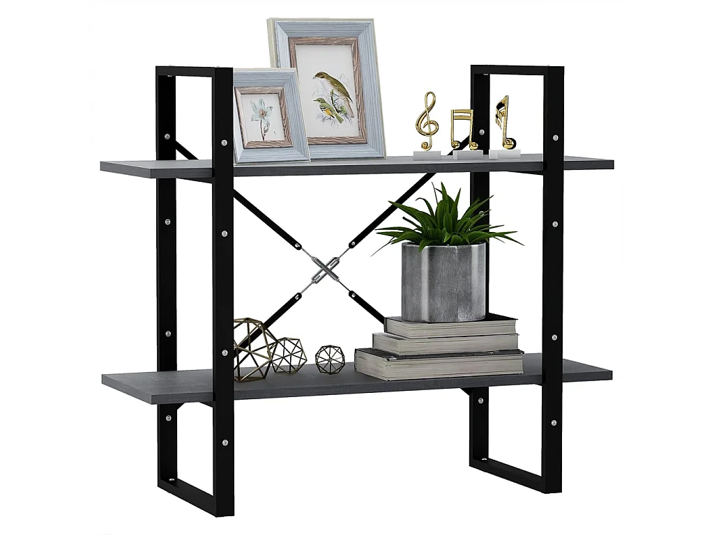 Bibliothèque à 2 niveaux Gris 80x30x70 Bois de pin massif