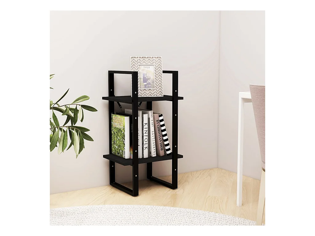 Bibliothèque à 2 niveaux Noir 40x30x70 Bois de pin massif