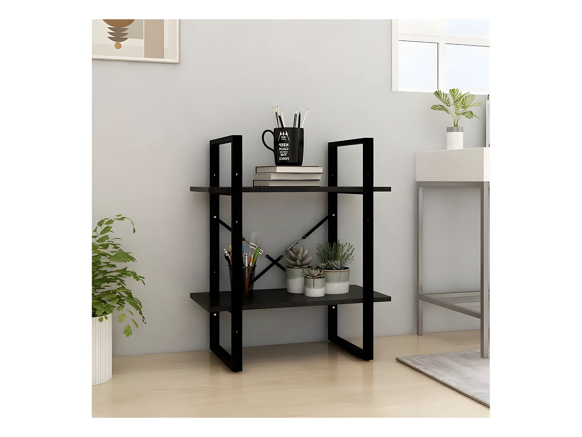 Bibliothèque à 2 niveaux Noir 60x30x70 cm Bois de pin massif