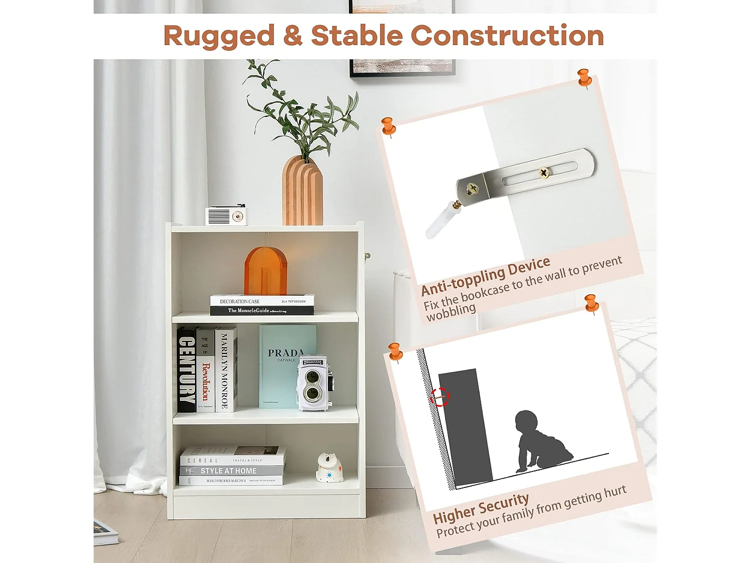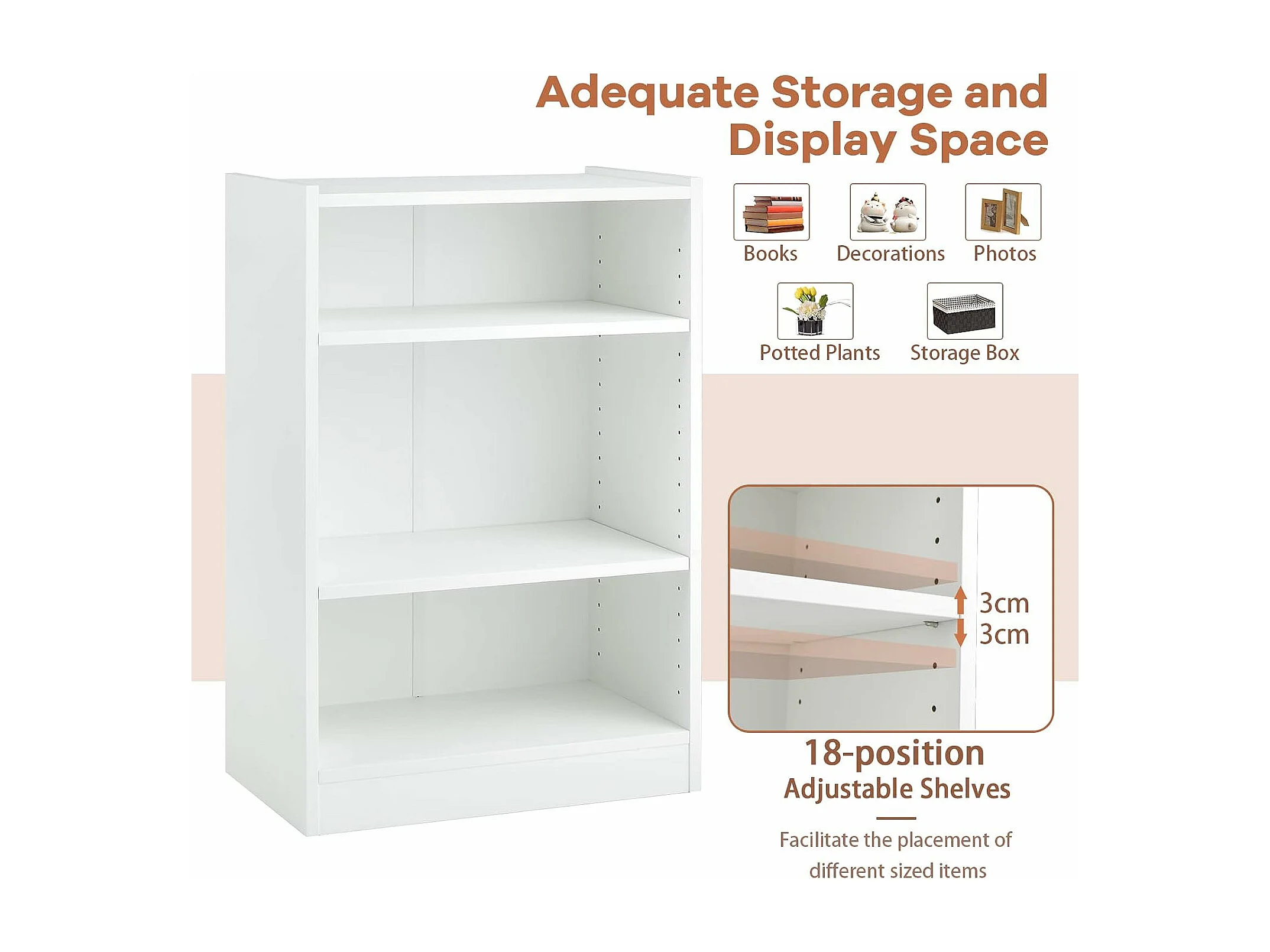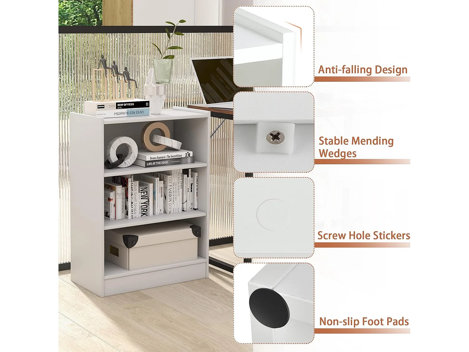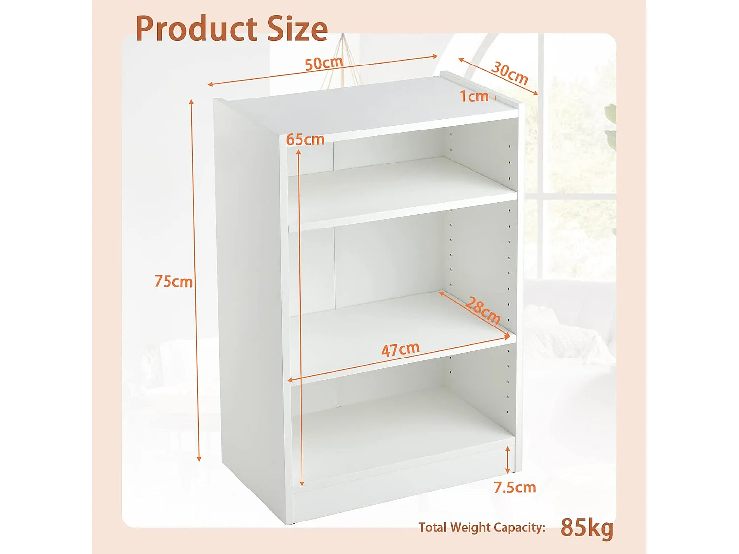 Bibliothèque à 3 niveaux avec 2 étagères réglables, salon, chambre, 50 x 30 x 75 cm