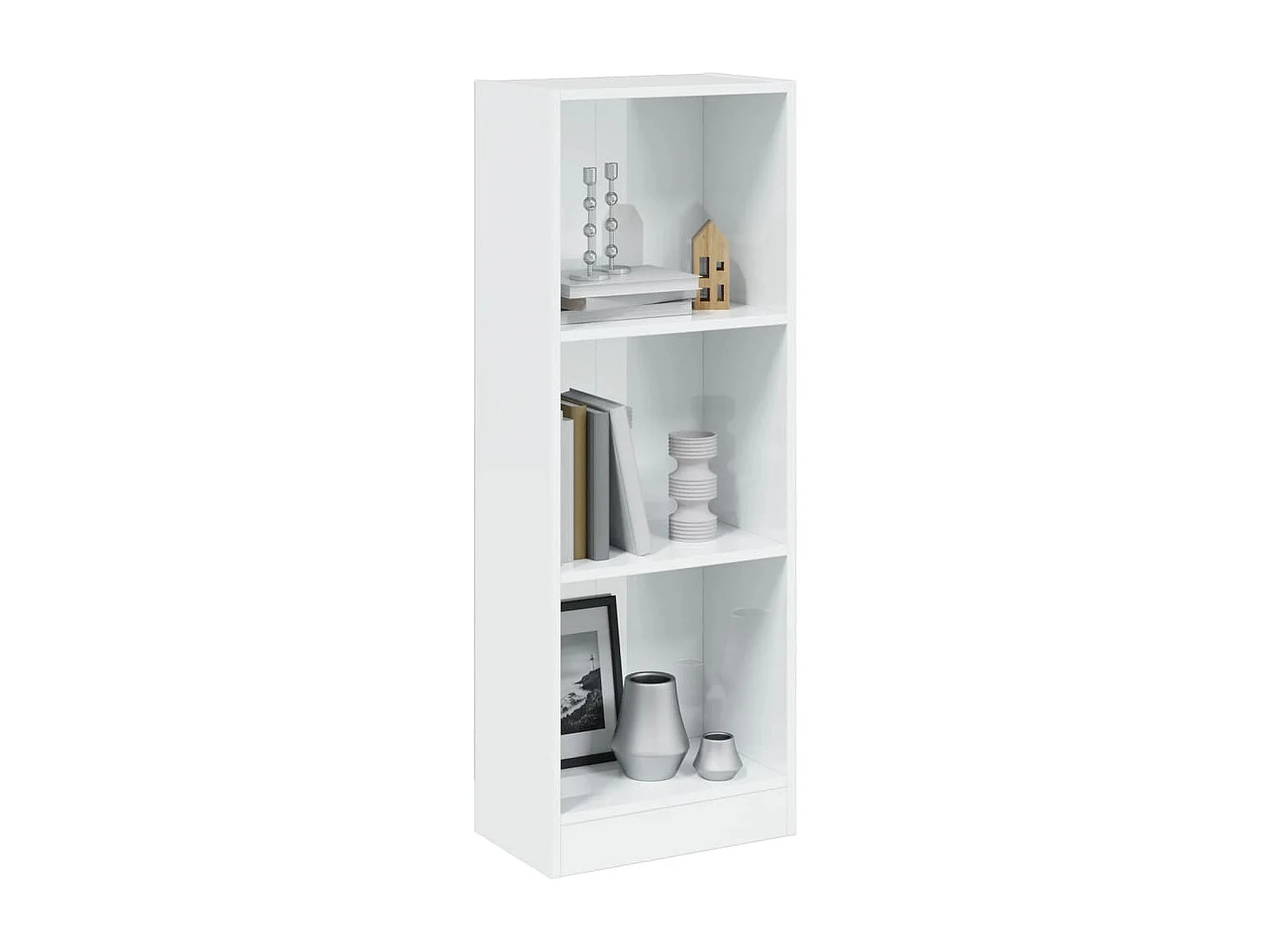 Bibliothèque à 3 niveaux blanc brillant bois d'ingénierie