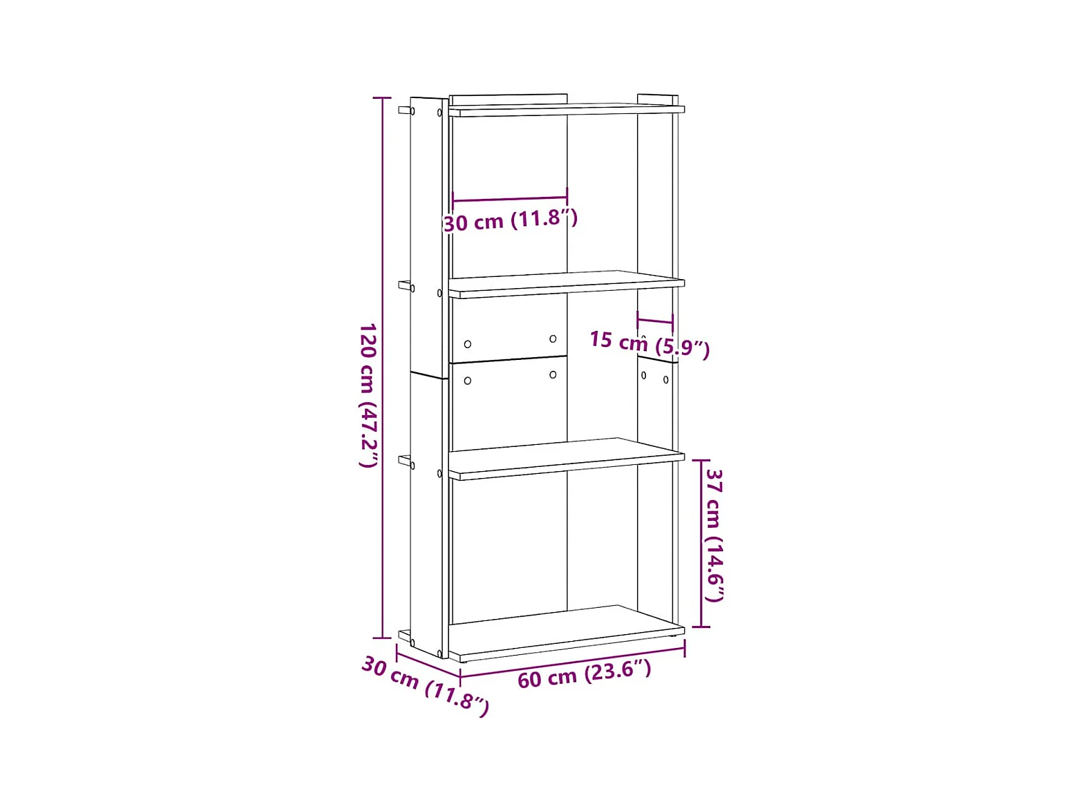 Bibliothèque à 3 niveaux vieux bois 60x30x80 cm bois ingénierie