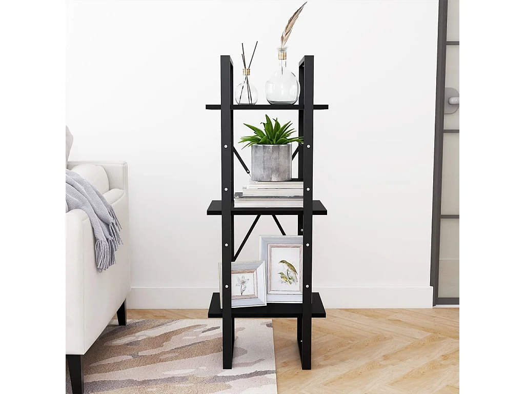 Bibliothèque à 3 niveaux Noir 40x30x105 Bois de pin massif
