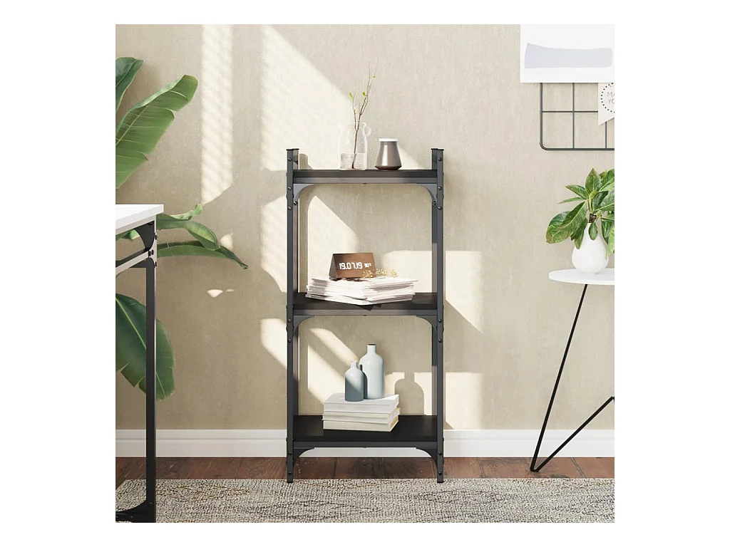 Bibliothèque à 3 niveaux noir 40x30x86 bois d'ingénierie
