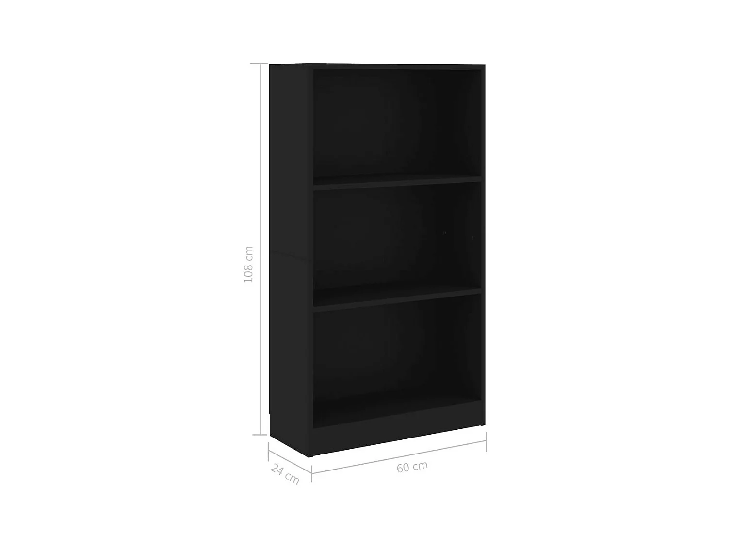 Bibliothèque à 3 niveaux Noir 60x24x108