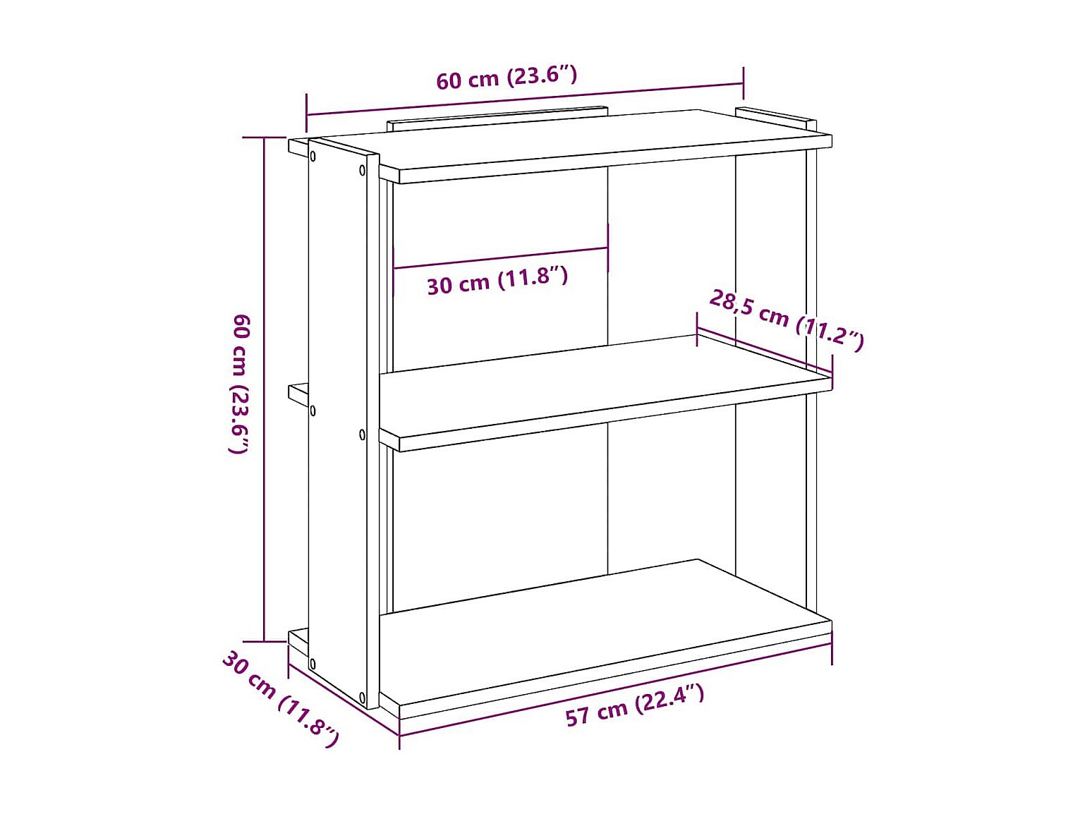 Bibliothèque à 3 niveaux vieux bois 60x30x60 cm bois ingénierie