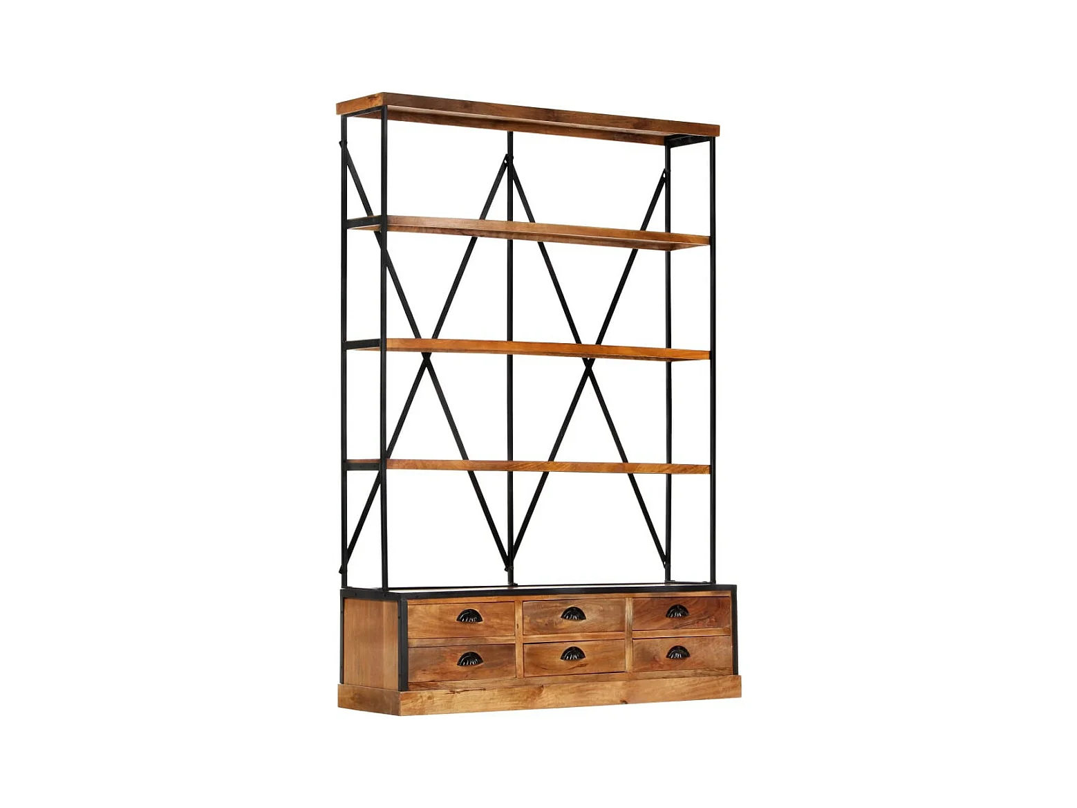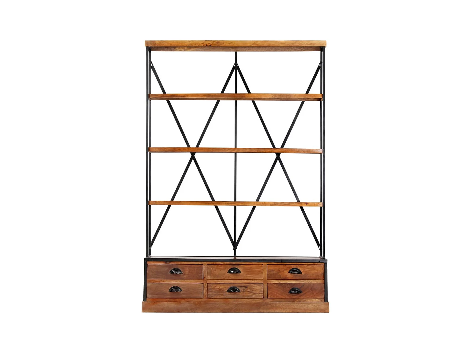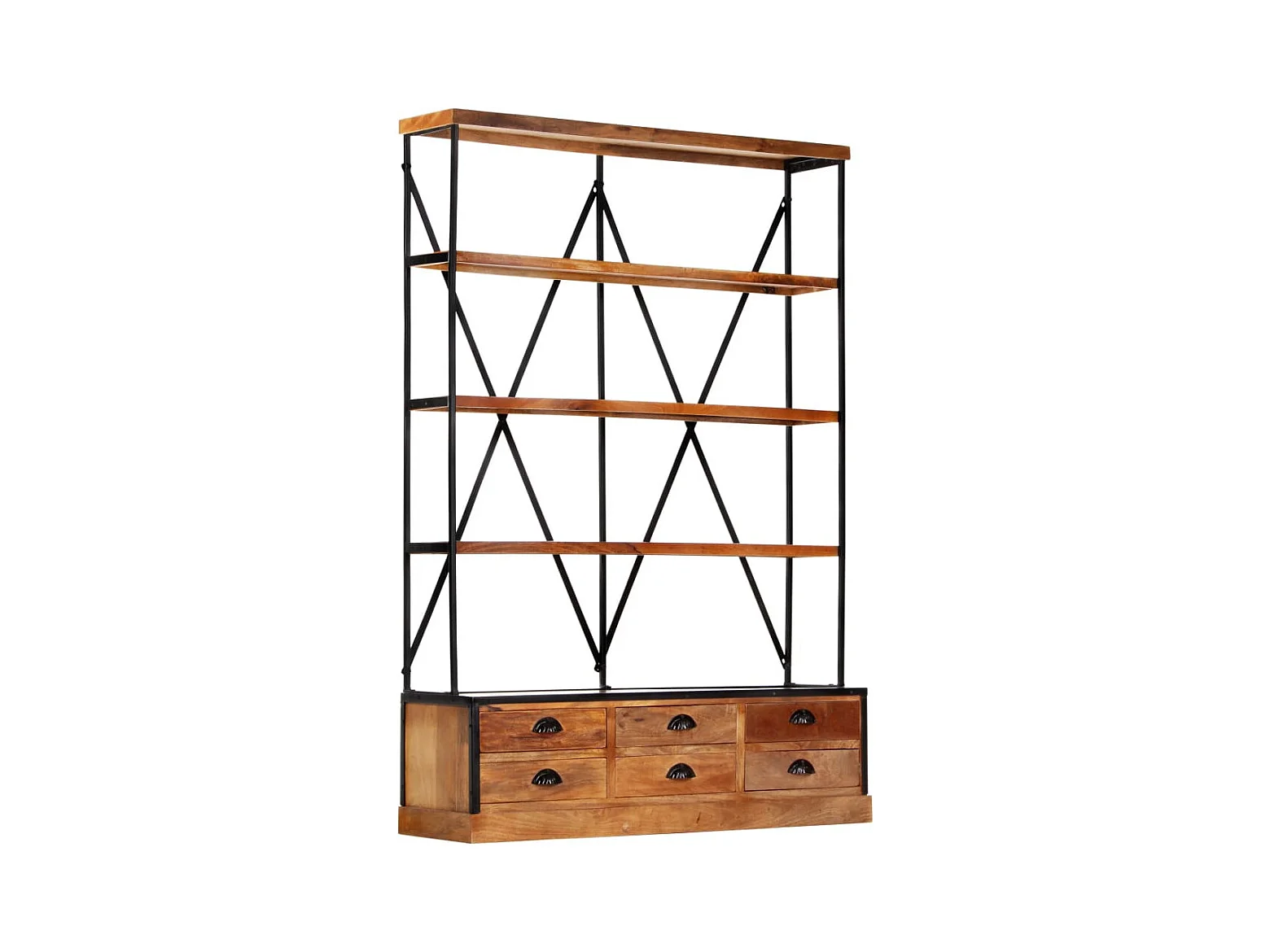 Bibliothèque à 4 étagères avec 6 tiroirs 122x36x181 Manguier