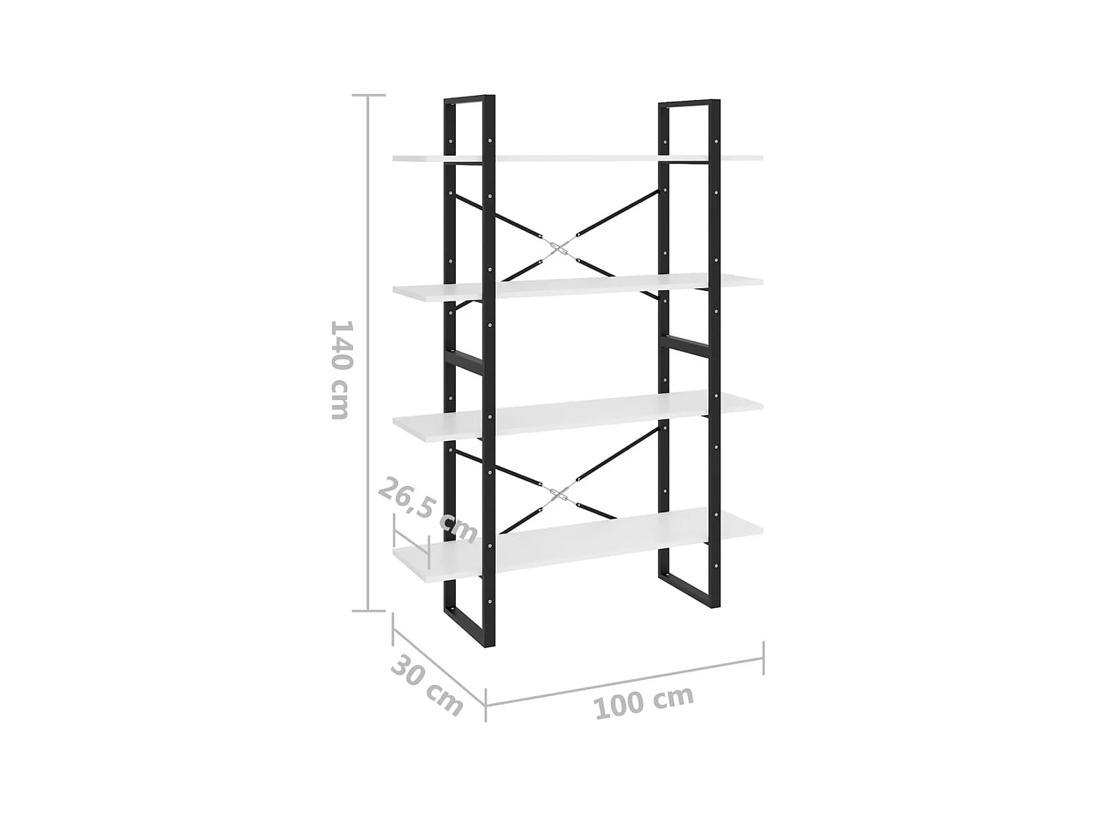Bibliothèque à 4 niveaux Blanc 100x30x140