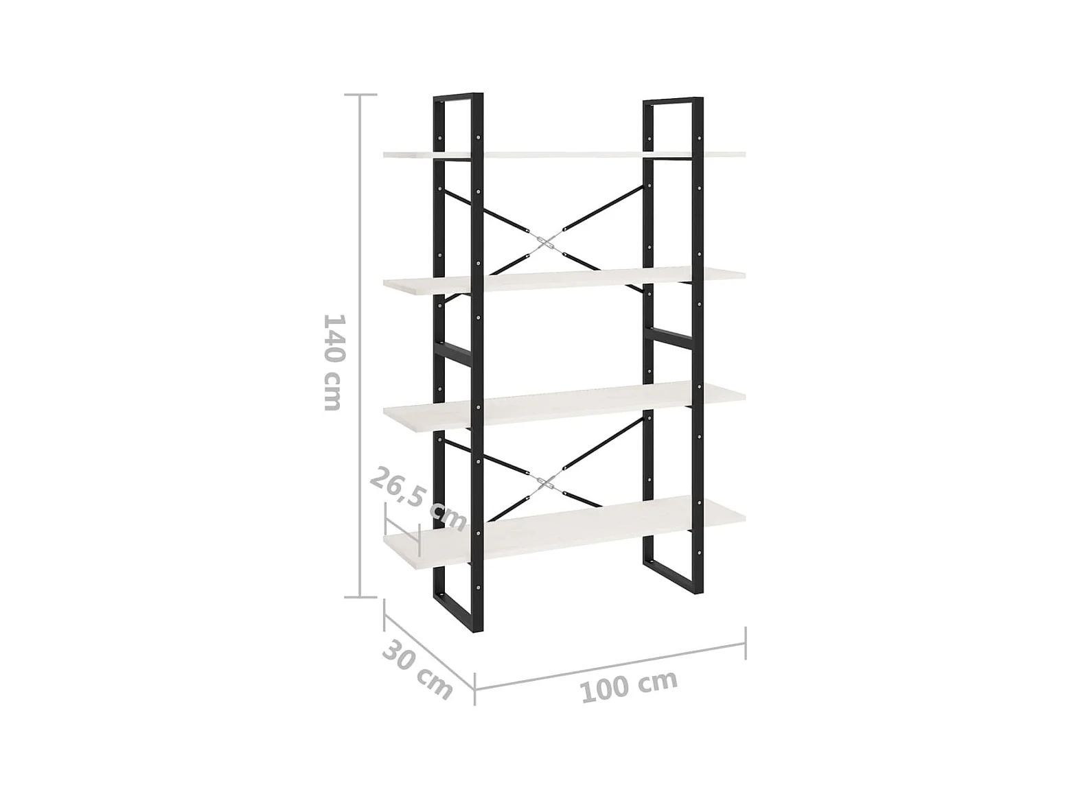 Bibliothèque à 4 niveaux Blanc 100x30x140 Bois de pin massif