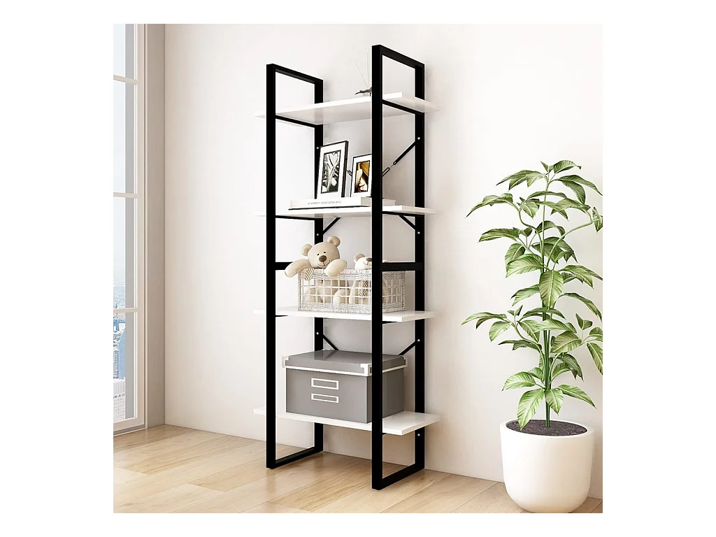 Bibliothèque à 5 niveaux Blanc 60x30x175 Bois de pin