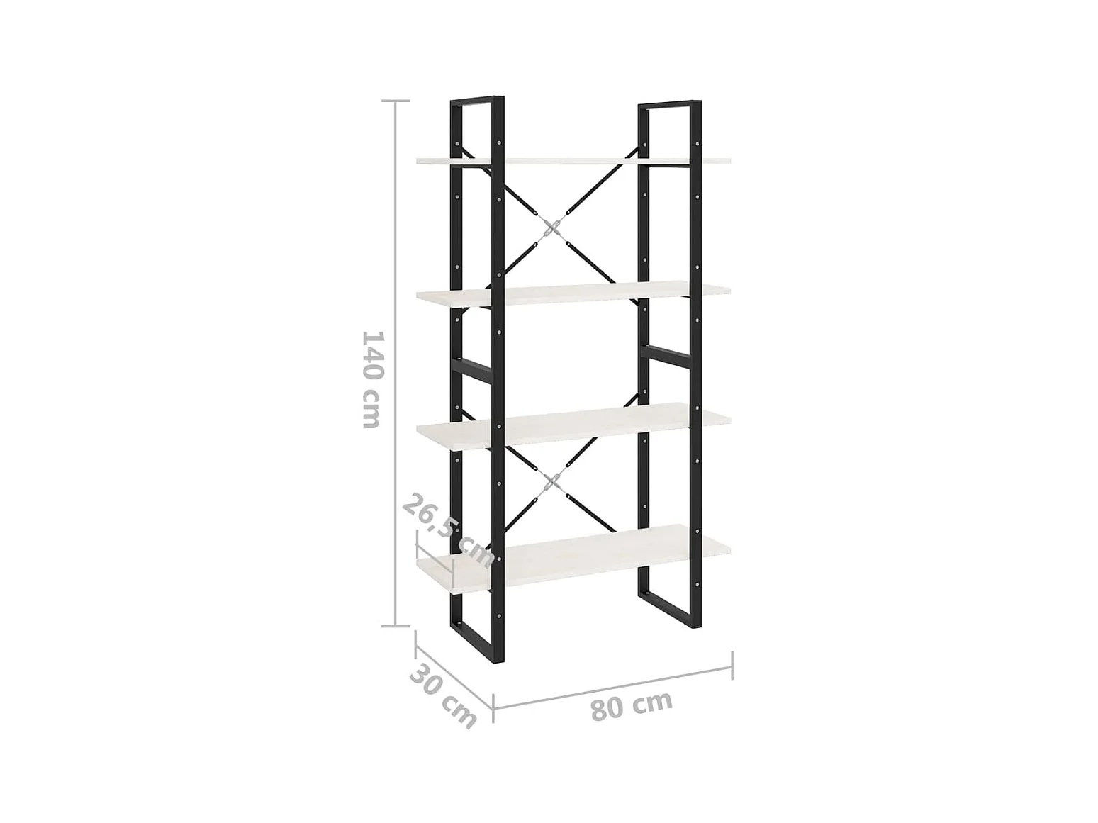 Bibliothèque à 4 niveaux Blanc 80x30x140 Bois de pin massif