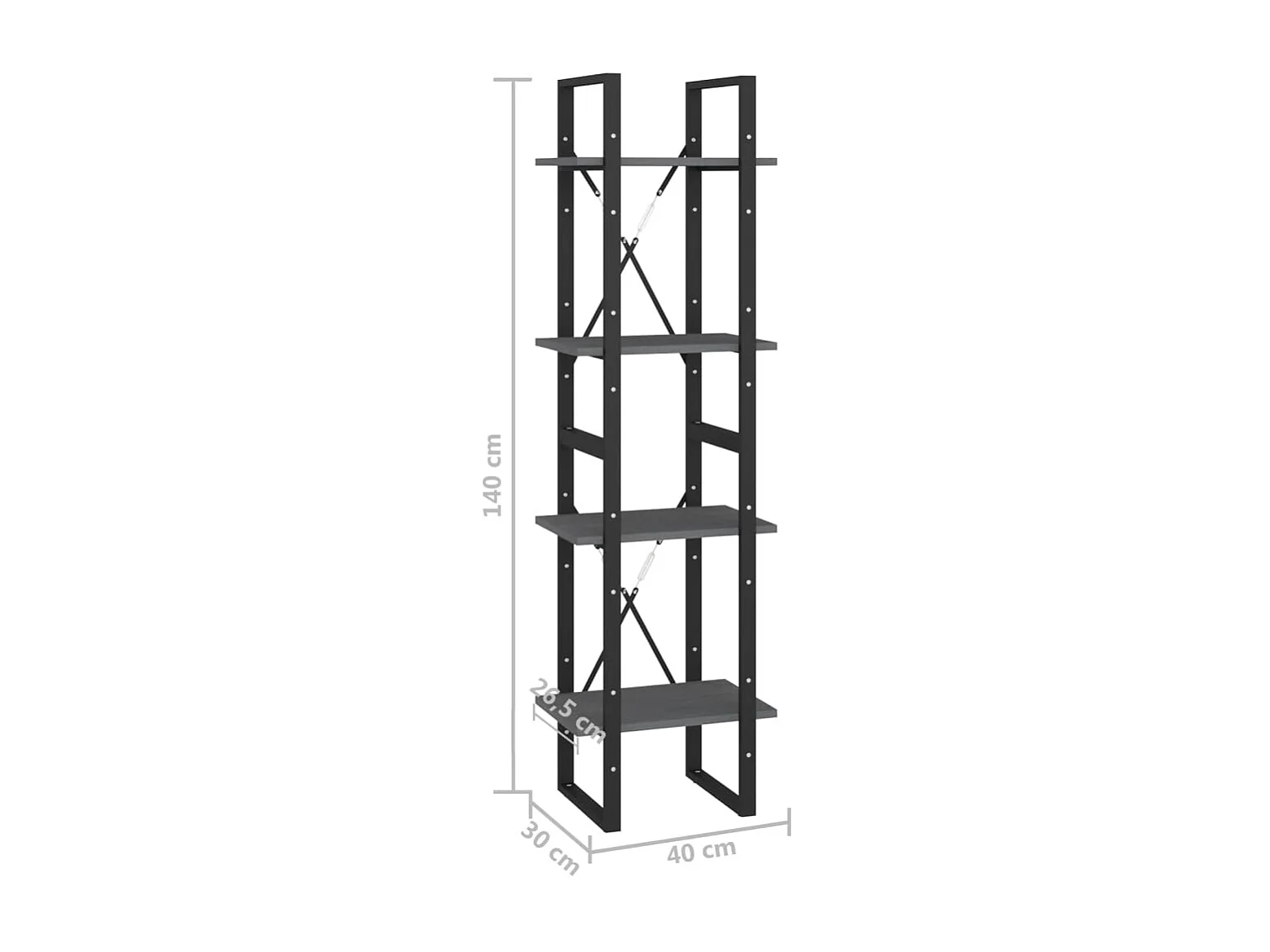 Bibliothèque à 4 niveaux Gris 40x30x140 Bois de pin massif