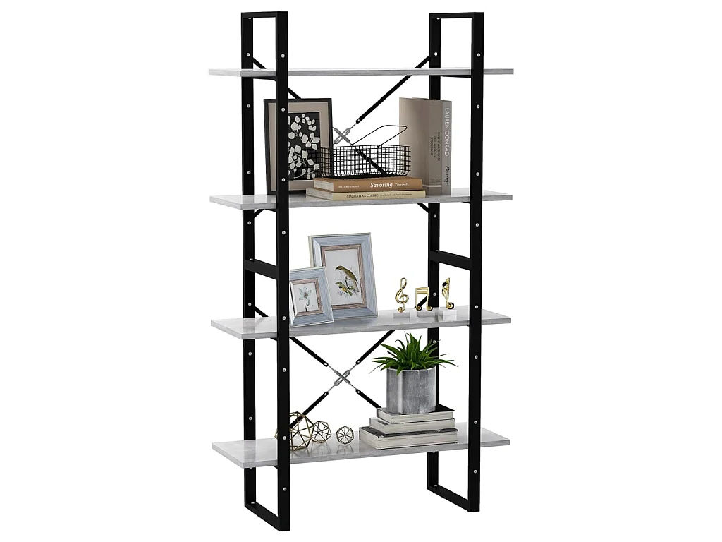 Bibliothèque à 4 niveaux Gris béton 80x30x140