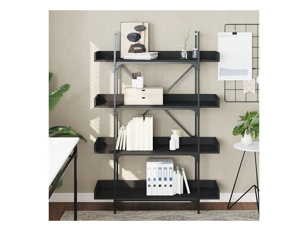 Bibliothèque à 4 niveaux noir 100x33x145,5 bois d'ingénierie