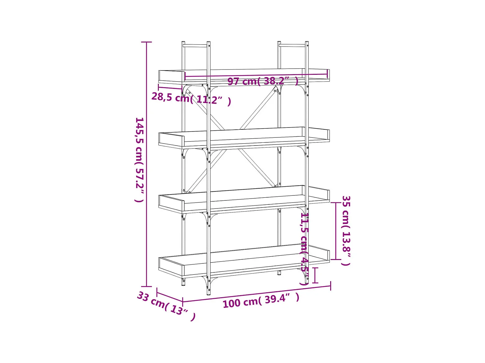Bibliothèque à 4 niveaux chêne fumé 100x33x145,5