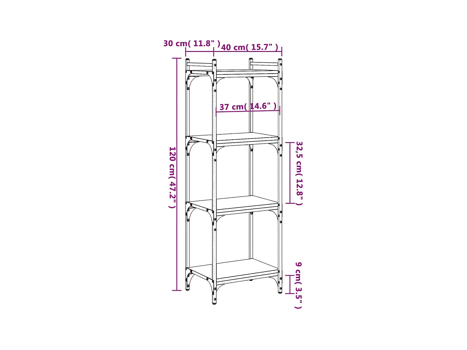 Bibliothèque à 4 niveaux noir 40x30x120 bois d'ingénierie
