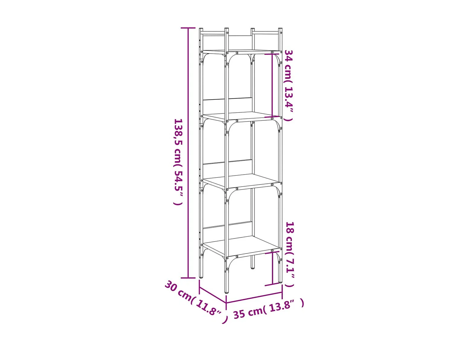 Bibliothèque à 4 niveaux sonoma gris 35x30x138,5