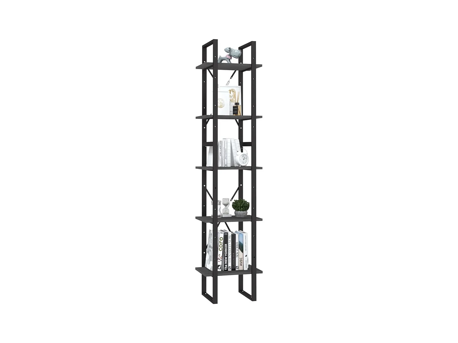 Bibliothèque à 5 niveaux Gris 40x30x175 Bois de pin