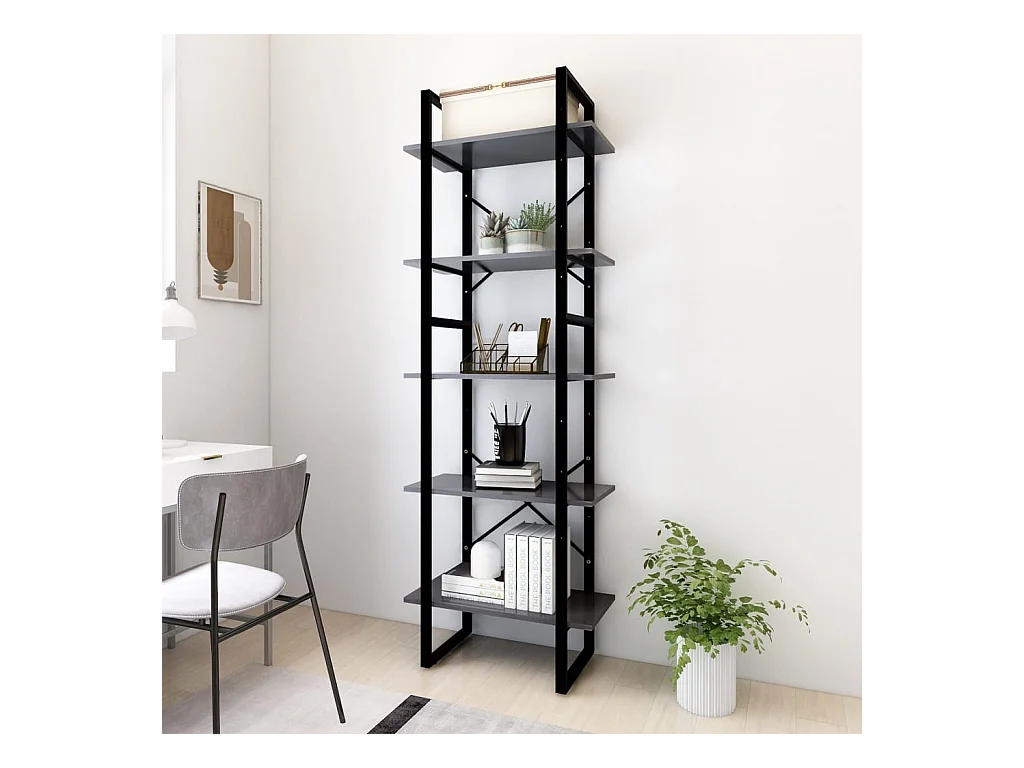 Bibliothèque à 5 niveaux Gris 60x30x175