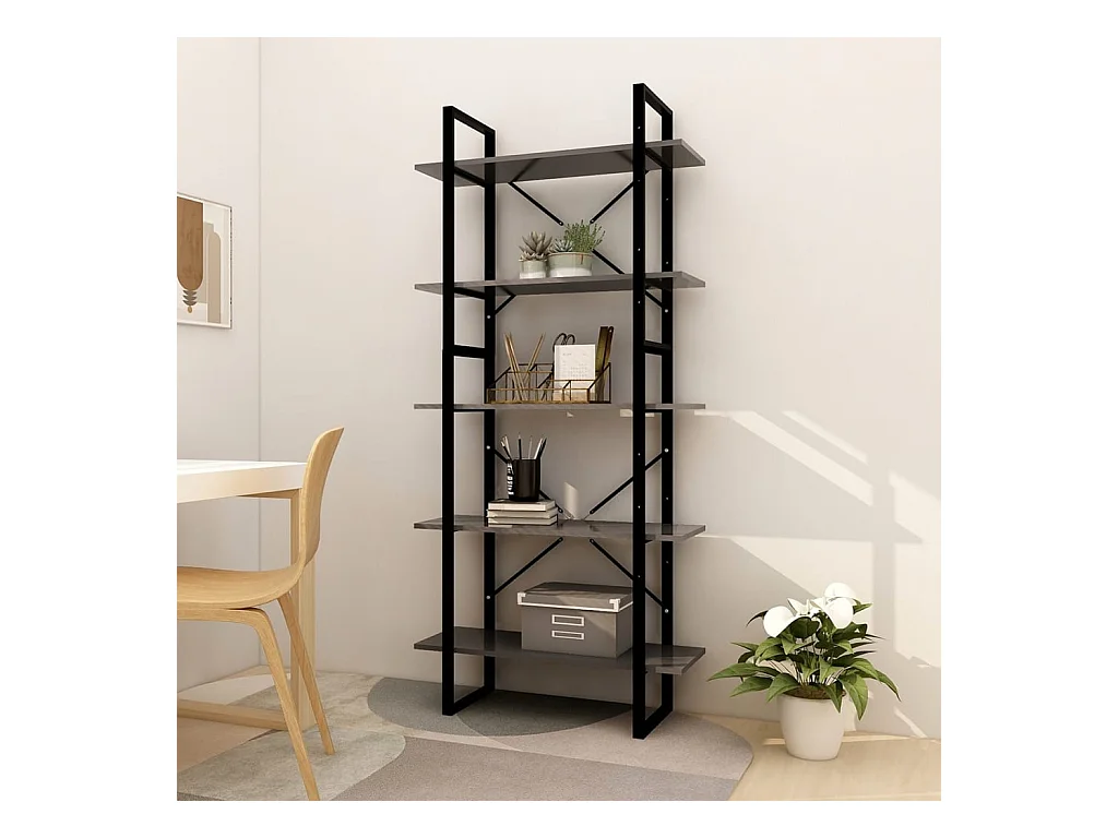Bibliothèque à 5 niveaux Gris 80x30x175
