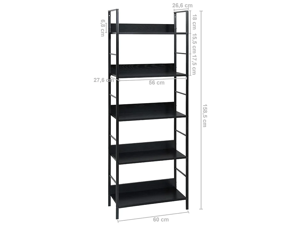 Bibliothèque à 5 niveaux Noir 60x27,6x158,5