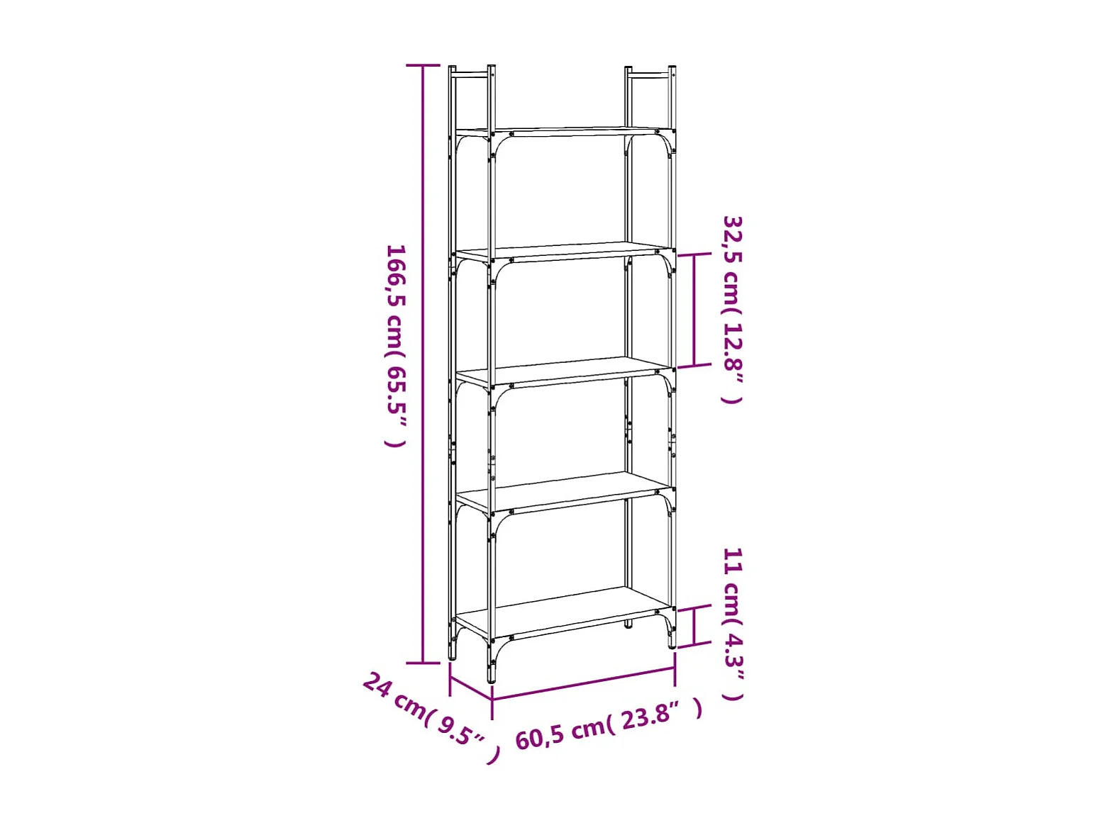 Bibliothèque à 5 niveaux sonoma gris 60,5x24x166,5