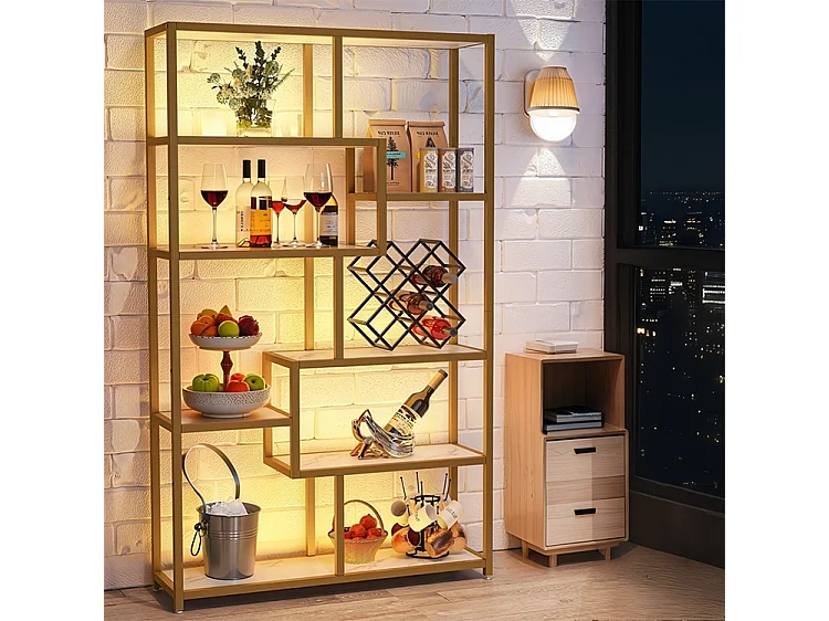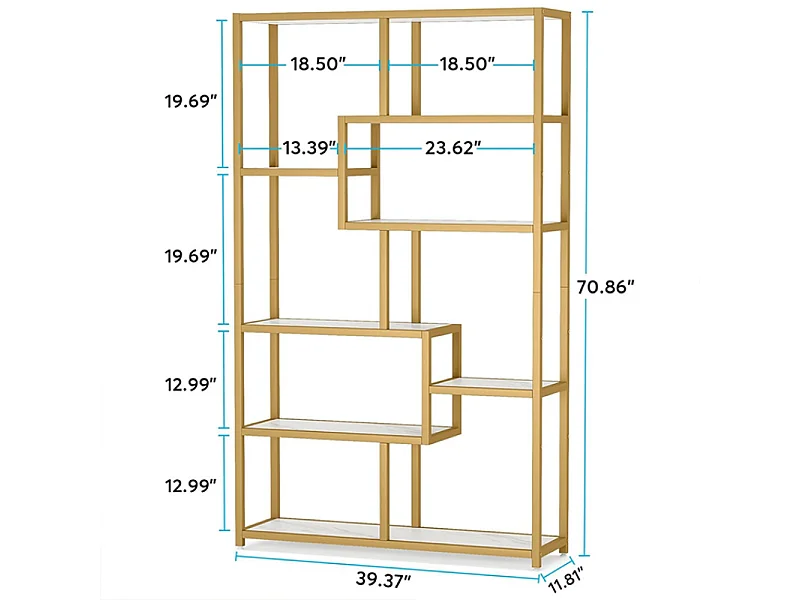 Bibliothèque à 8 niveaux de Rangement, 100 x 30 x 180 cm Étagère indépendante, Étagères d'Affichage sur Pied