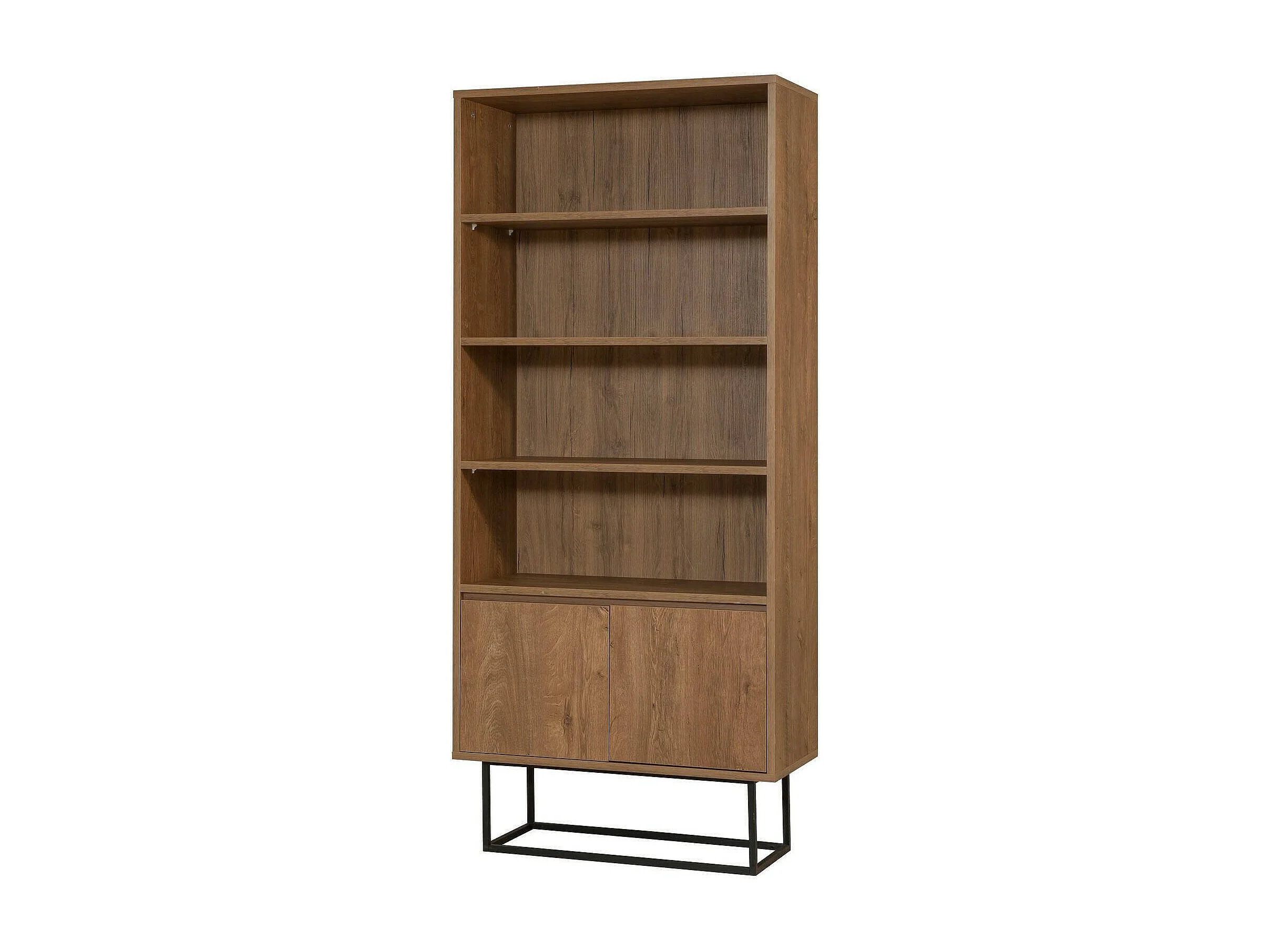 Bibliothèque Almeni, Etagère de bureau, Porte-livre mobile, Librairie, 80x36h182 cm, Noyer et Noir