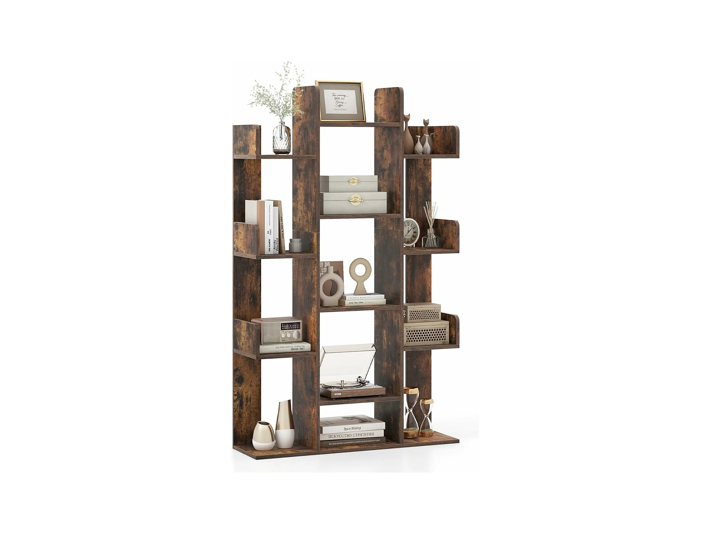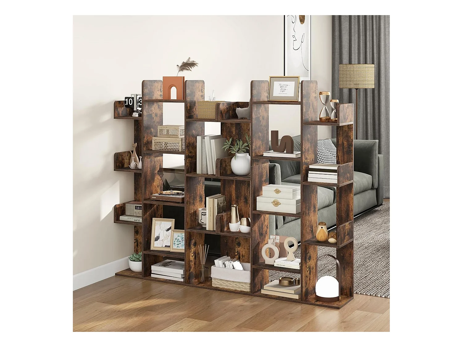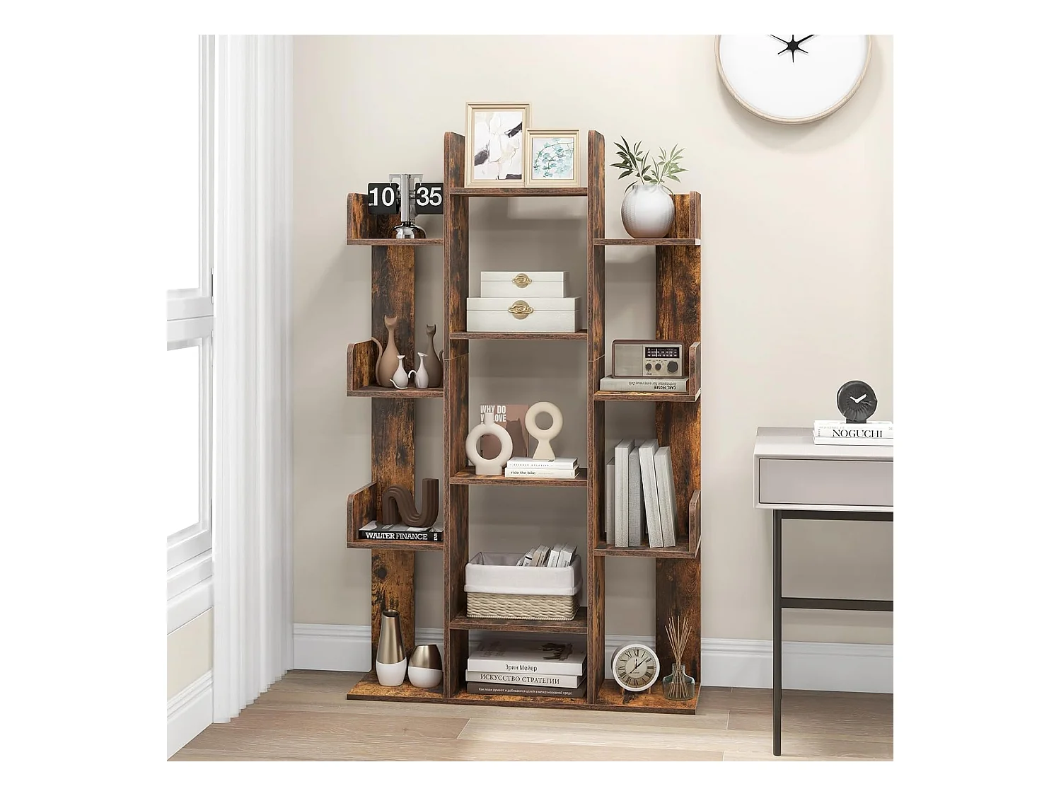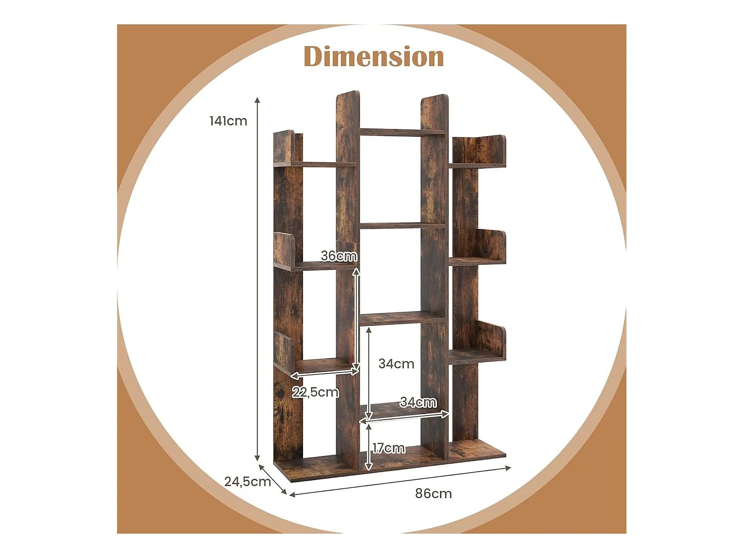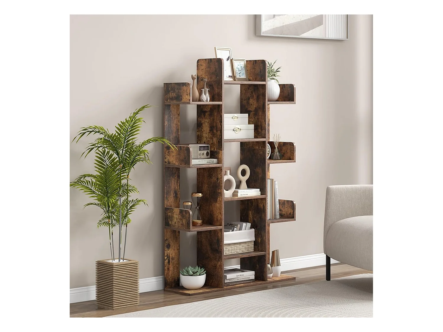Bibliothèque arbre, 13 étagères ouvertes, etagère décorative autoportante,marron rustique
