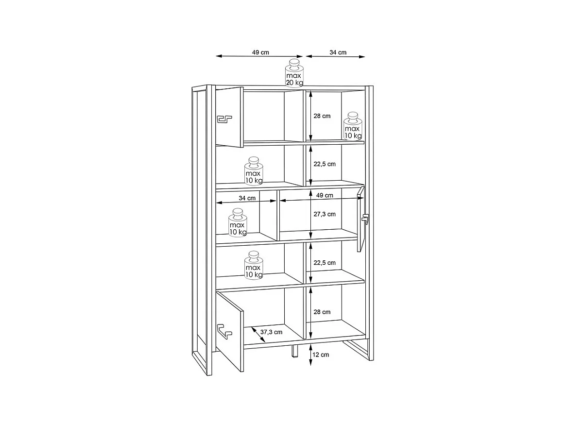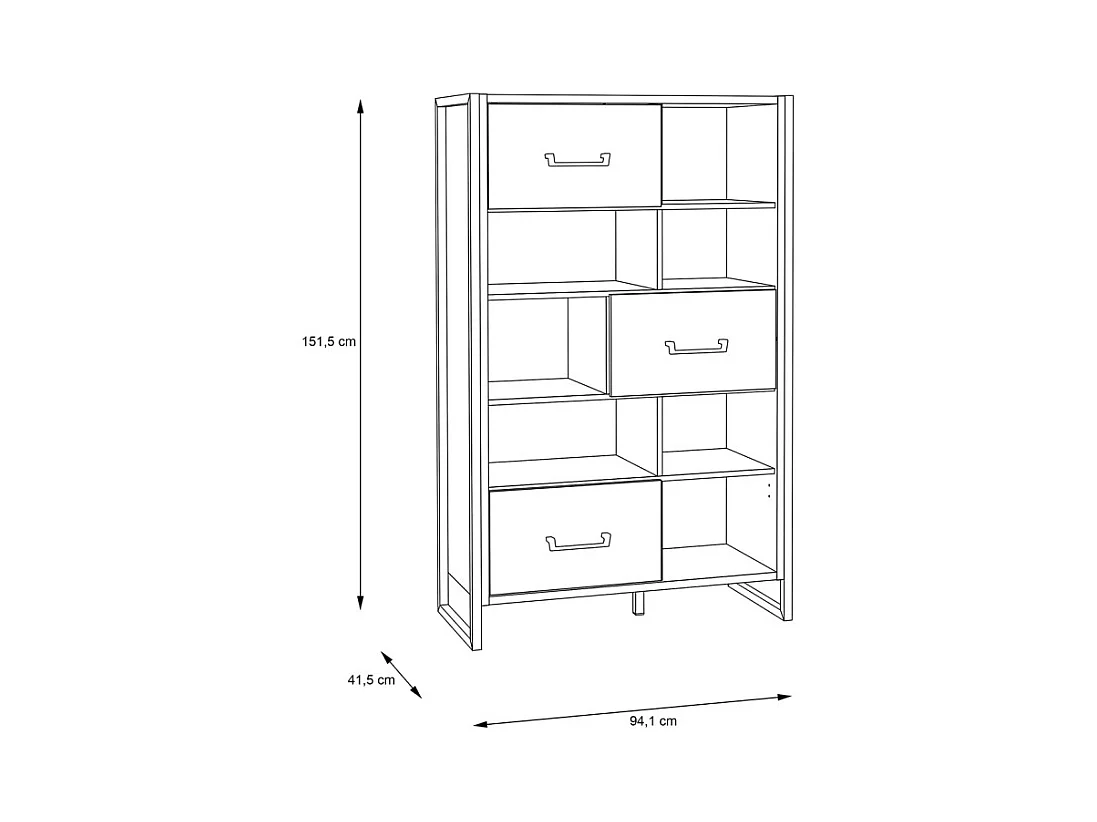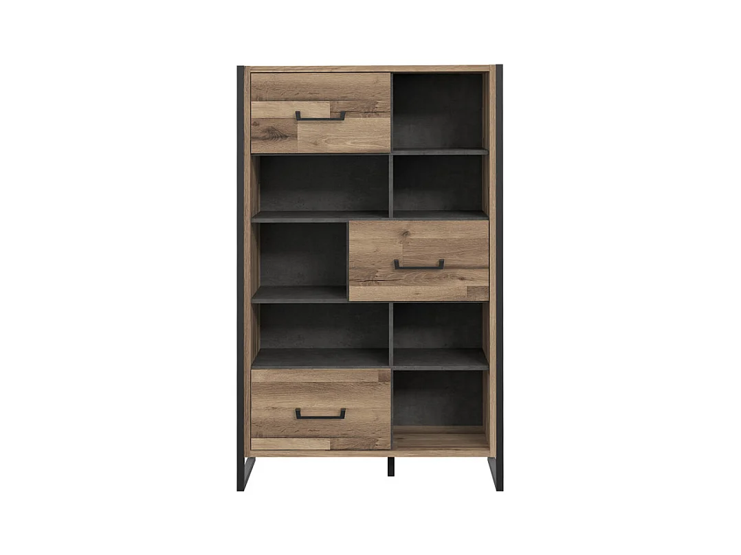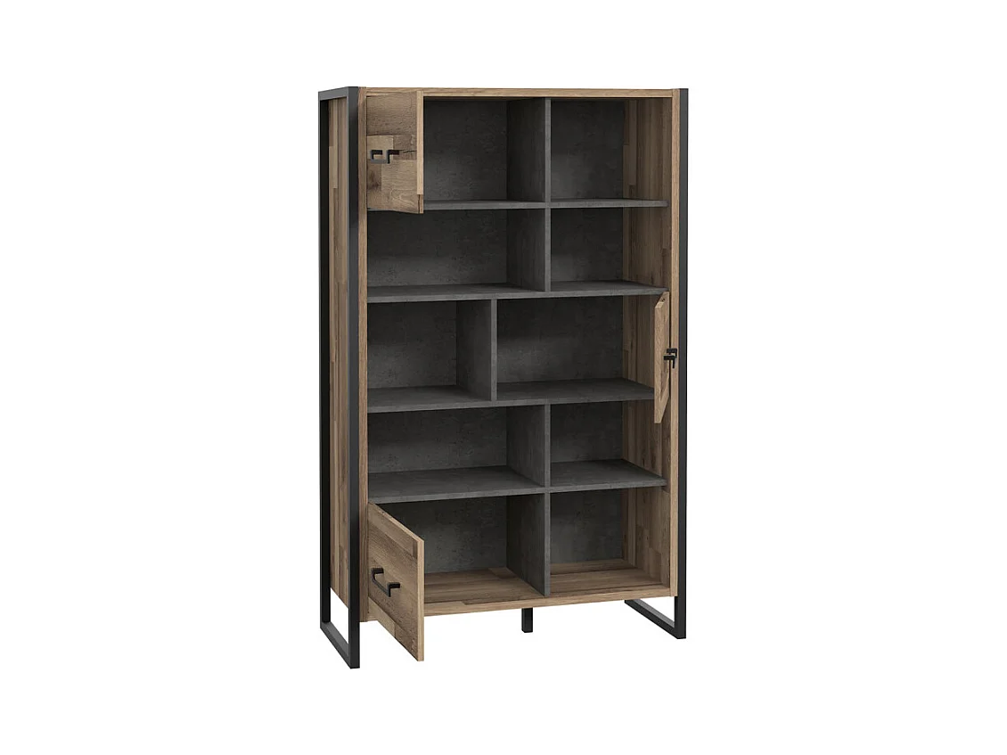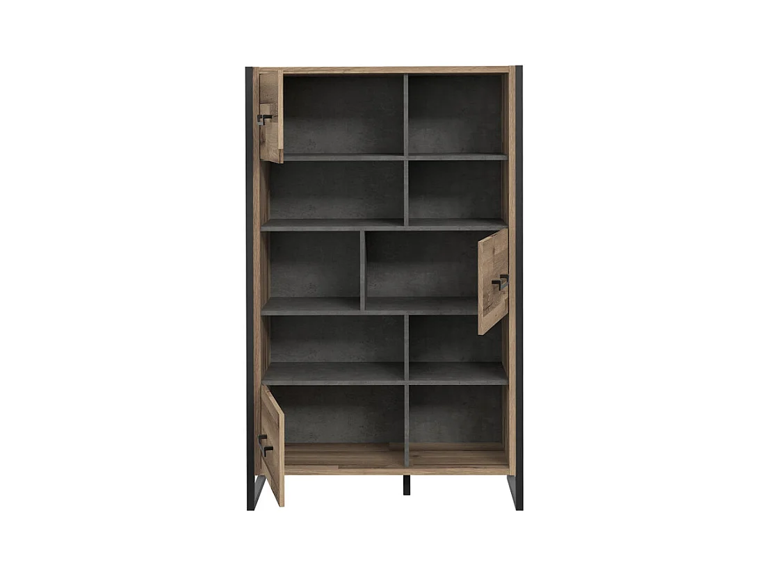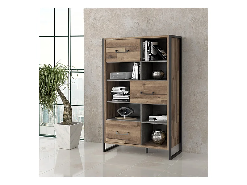 Bibliothèque asymétrique 3 portes décor bois recyclé et métal - APACHE